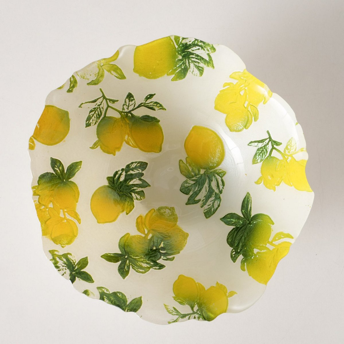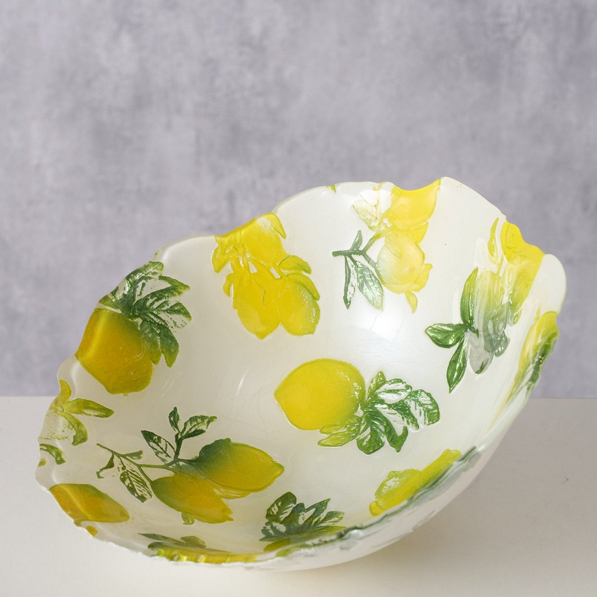 Bowl Calabria, Green, White, Yellow, Round, H 5 cm, D 15 cm glass laquered colour-mix