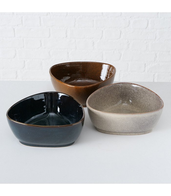 Bowl Lenja , 3 ass., Triangle, Round, Bowl, Dishwasher safe, H 8,00 cm, D 20,00 cm porcelain colour-mix