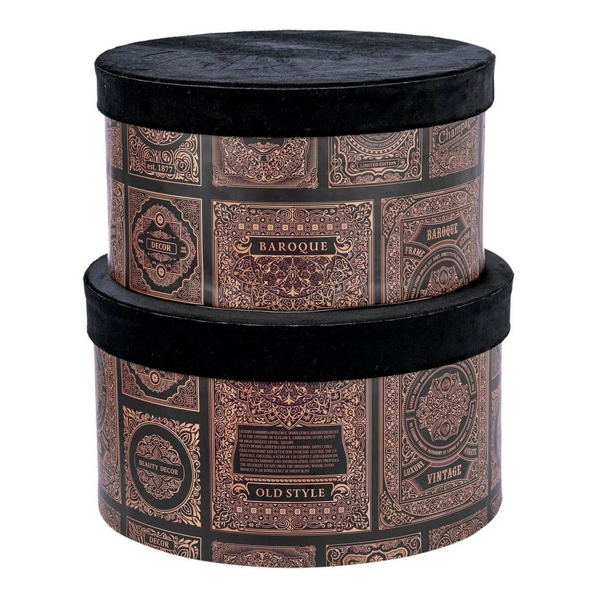 BOX Set/2 ROUND BLACK VELVET BROWN SHAPES D25-Η14,5cm, D27,5-H16cm