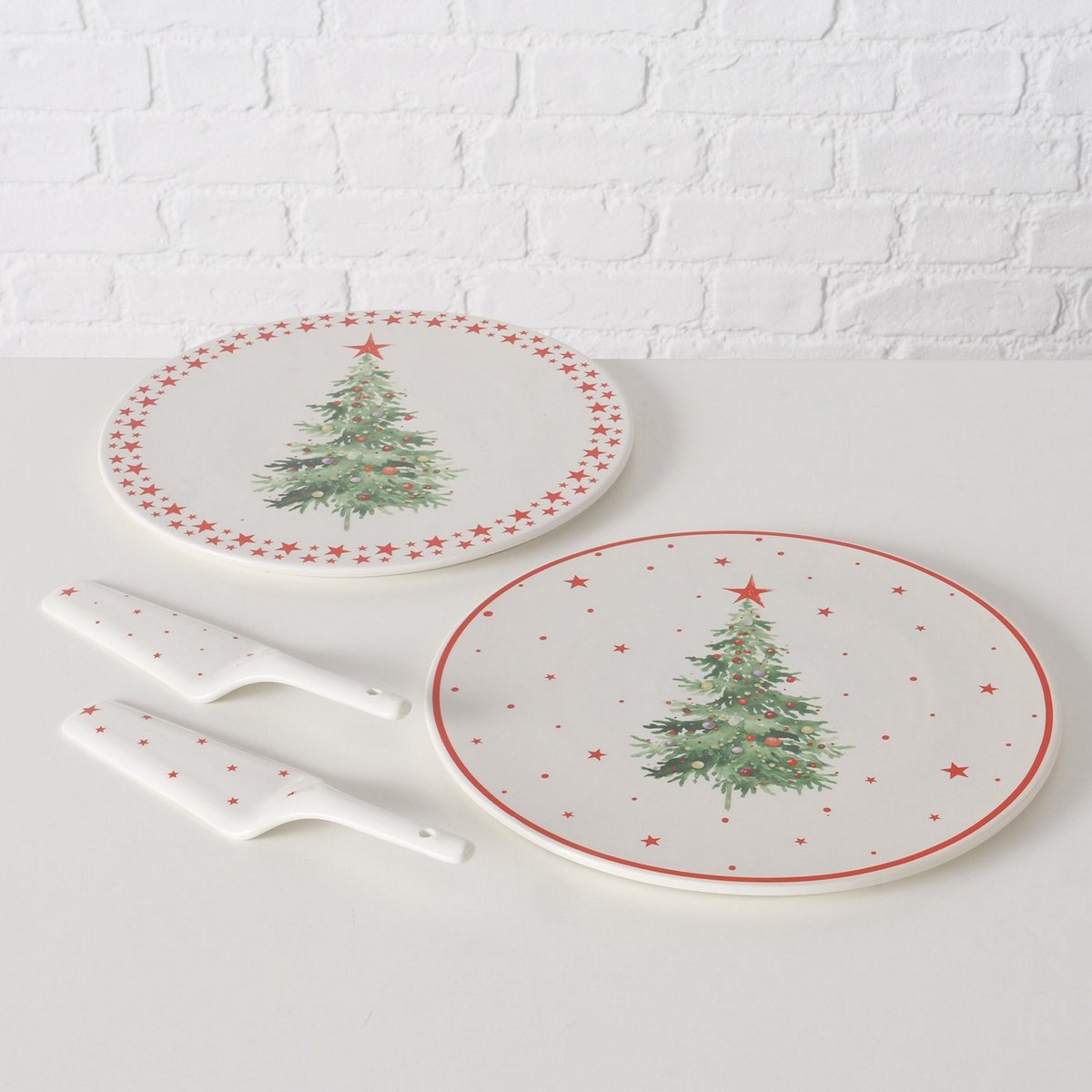 Cake plate Delica, 2 p., 2 ass., New Bone, Multi-coloured, Motif, Green, Red, White, Dishwasher safe New Bone colour-mix