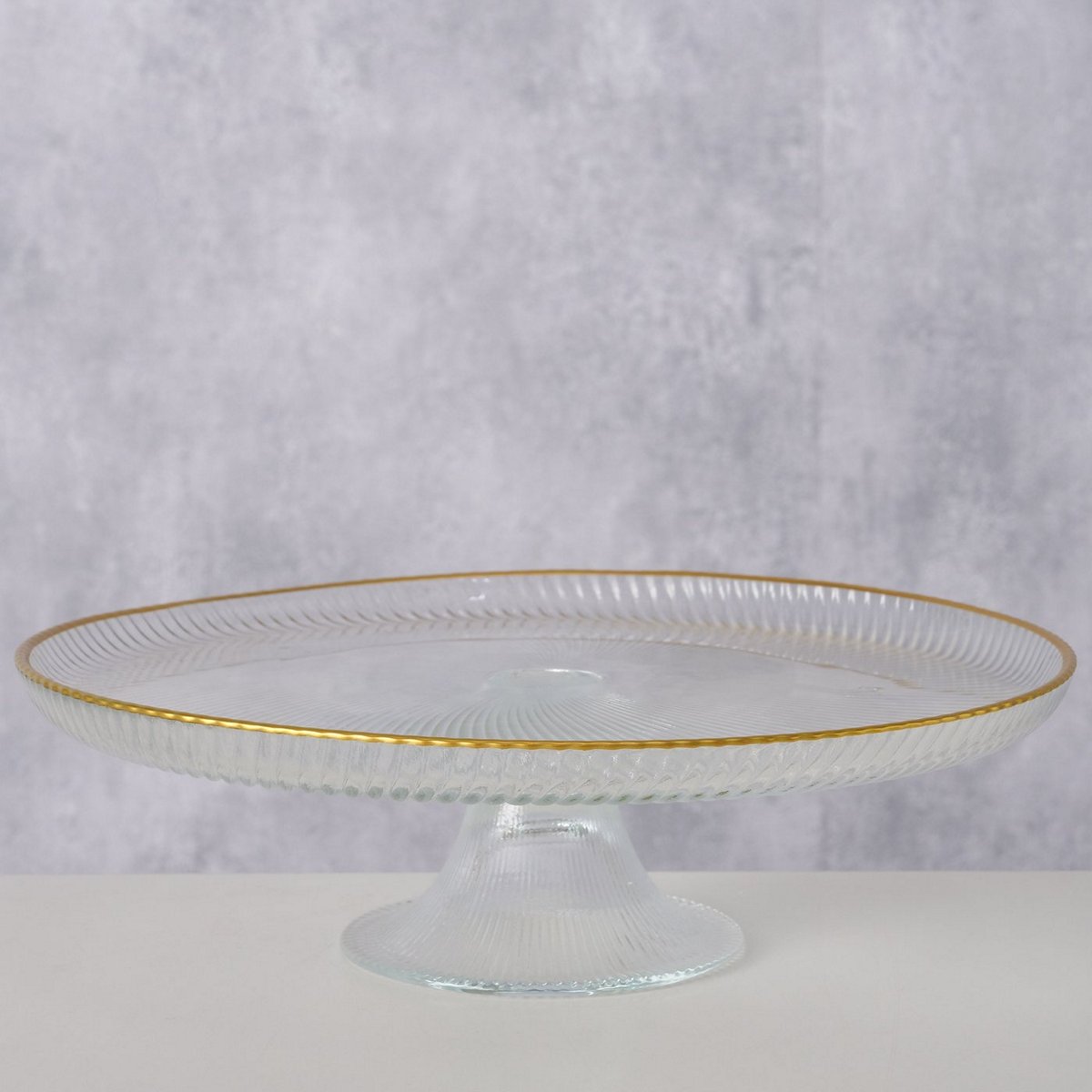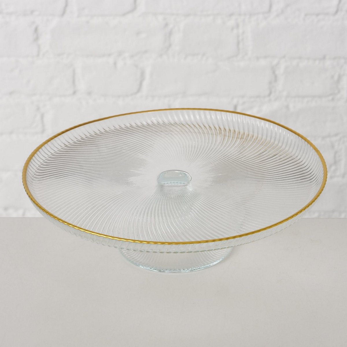 Cake plate Mirol, Shiny, Clear glass, Single-colour, Coloured edge, Gold, Transparent glass clear colour-mix H6 D21,5cm