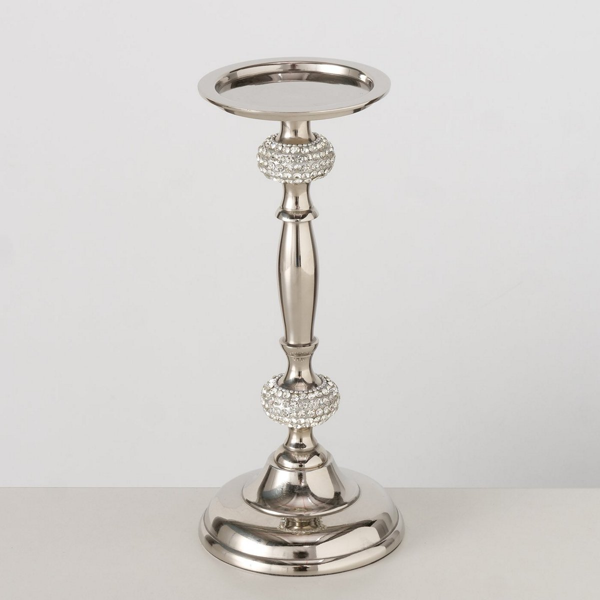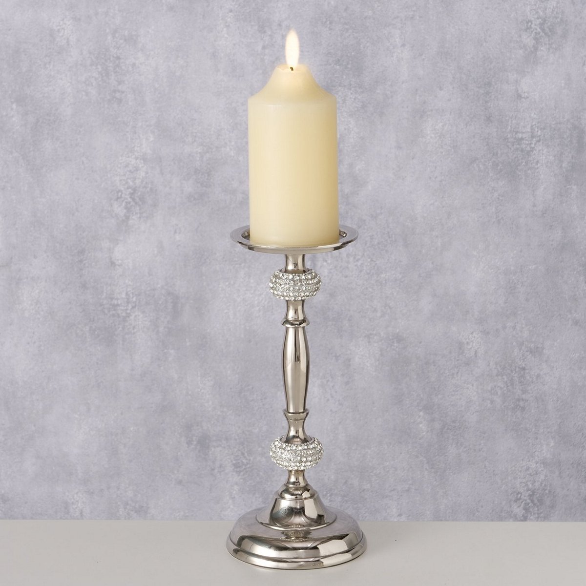 Candle holder Brilli, Round, H 26 cm, Alu nickle, Glass lacquered, Silver mixed materials silver
