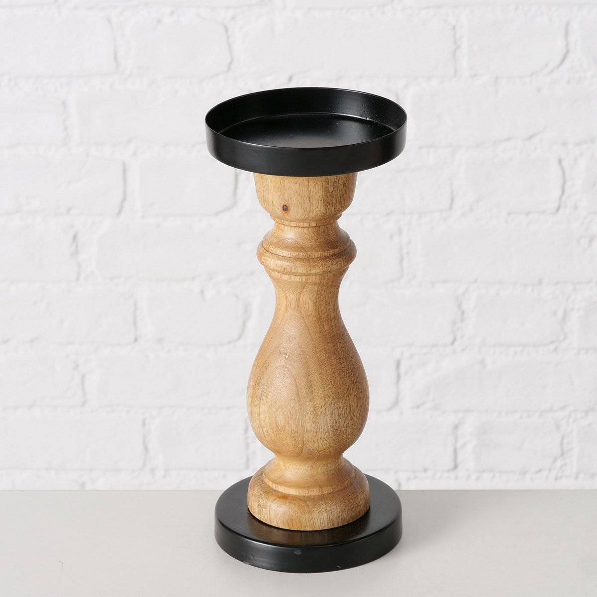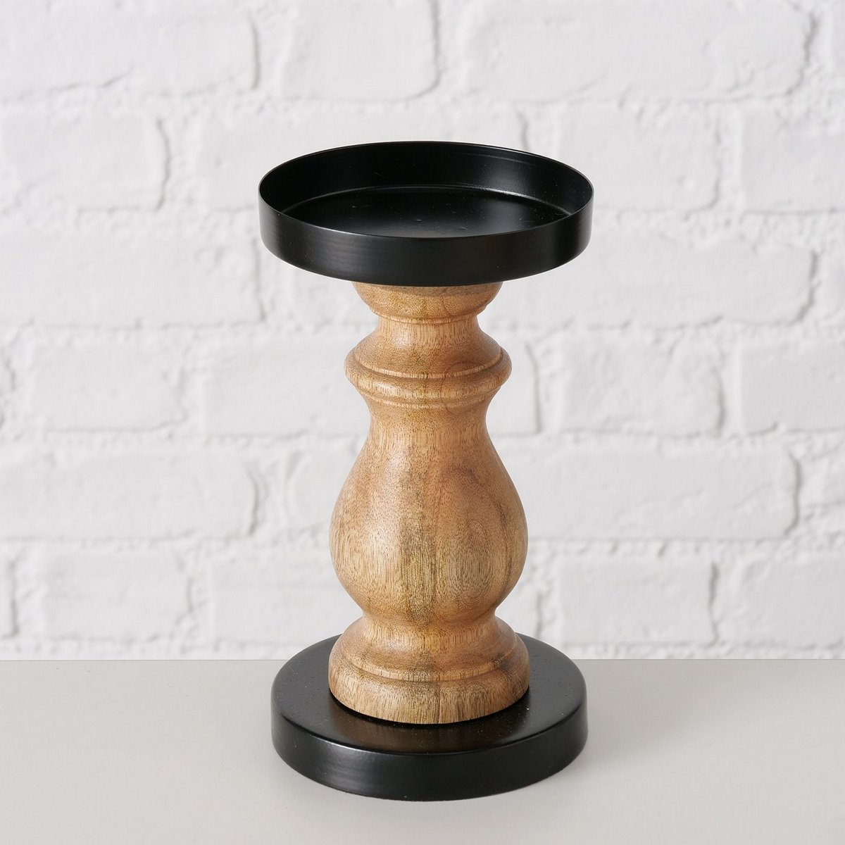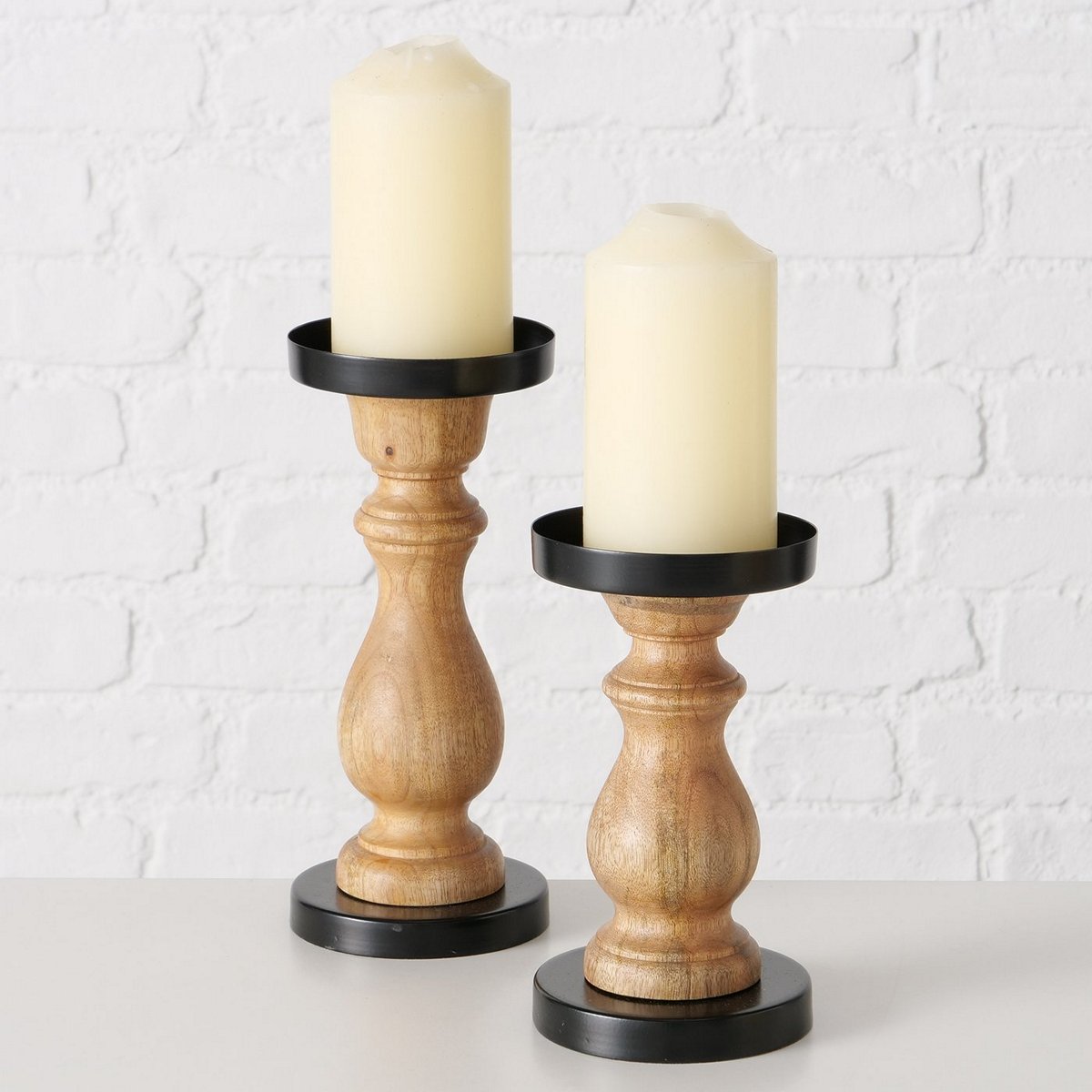 Candle holder Ceros, 2 p., Set 2, Round, H 18-24 cm, Mango (Mangifera indica), Iron, Black, Natural mixed materials colo