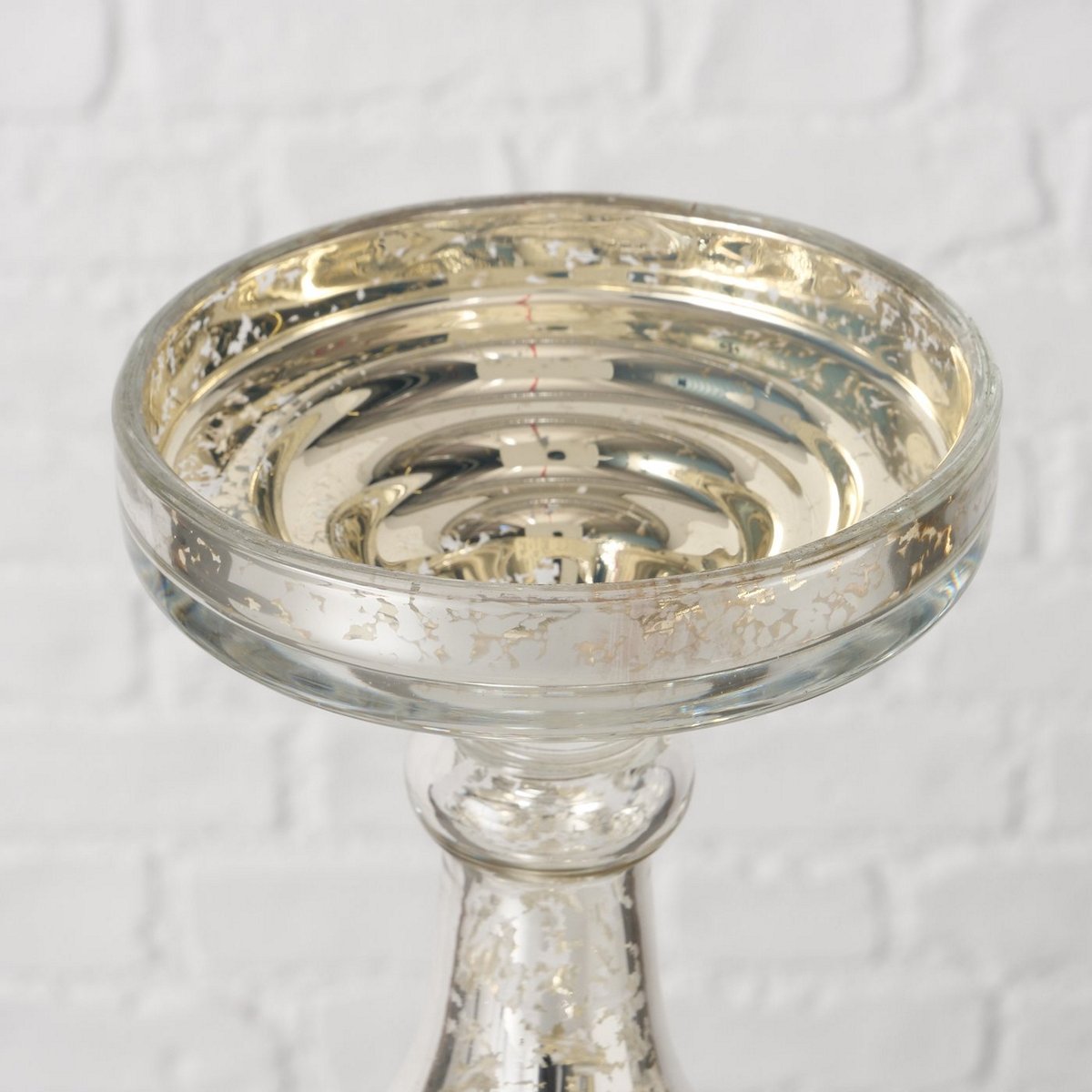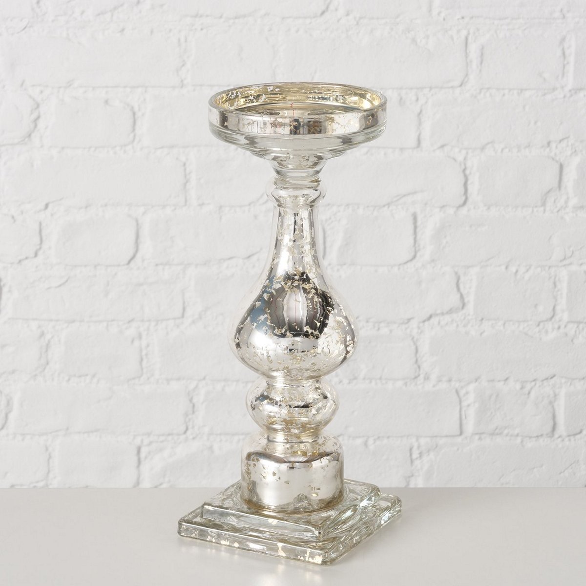 Candle holder Classico, Round, Square, H 32 cm, L 12,5 cm, Glass lacquered glass laquered antique silver
