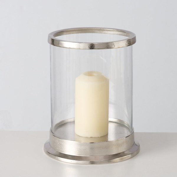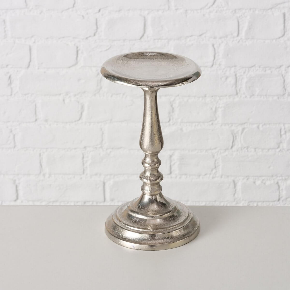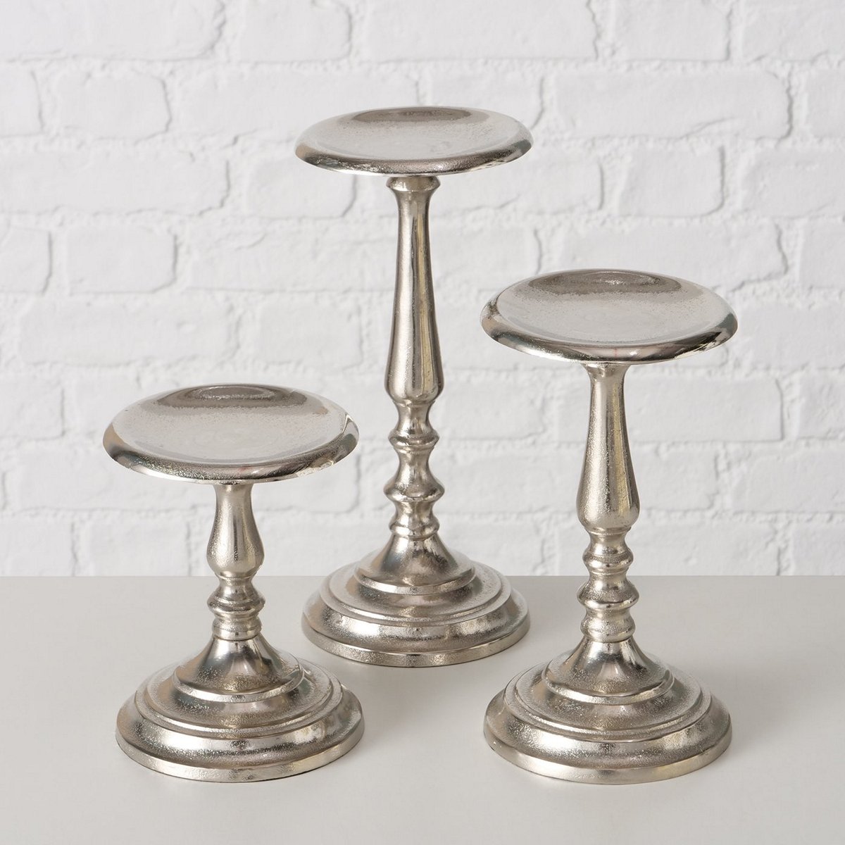 Candle holder Dunyelle, 3 p., Set 3, Round, H16-27 cm D12cm, Alu nickle, Silver alu nickle silver