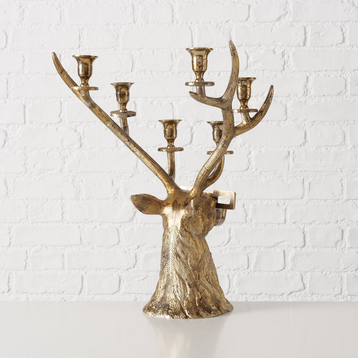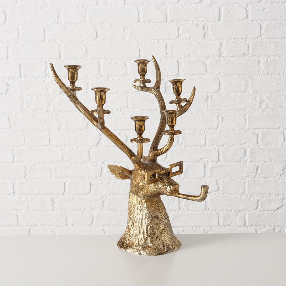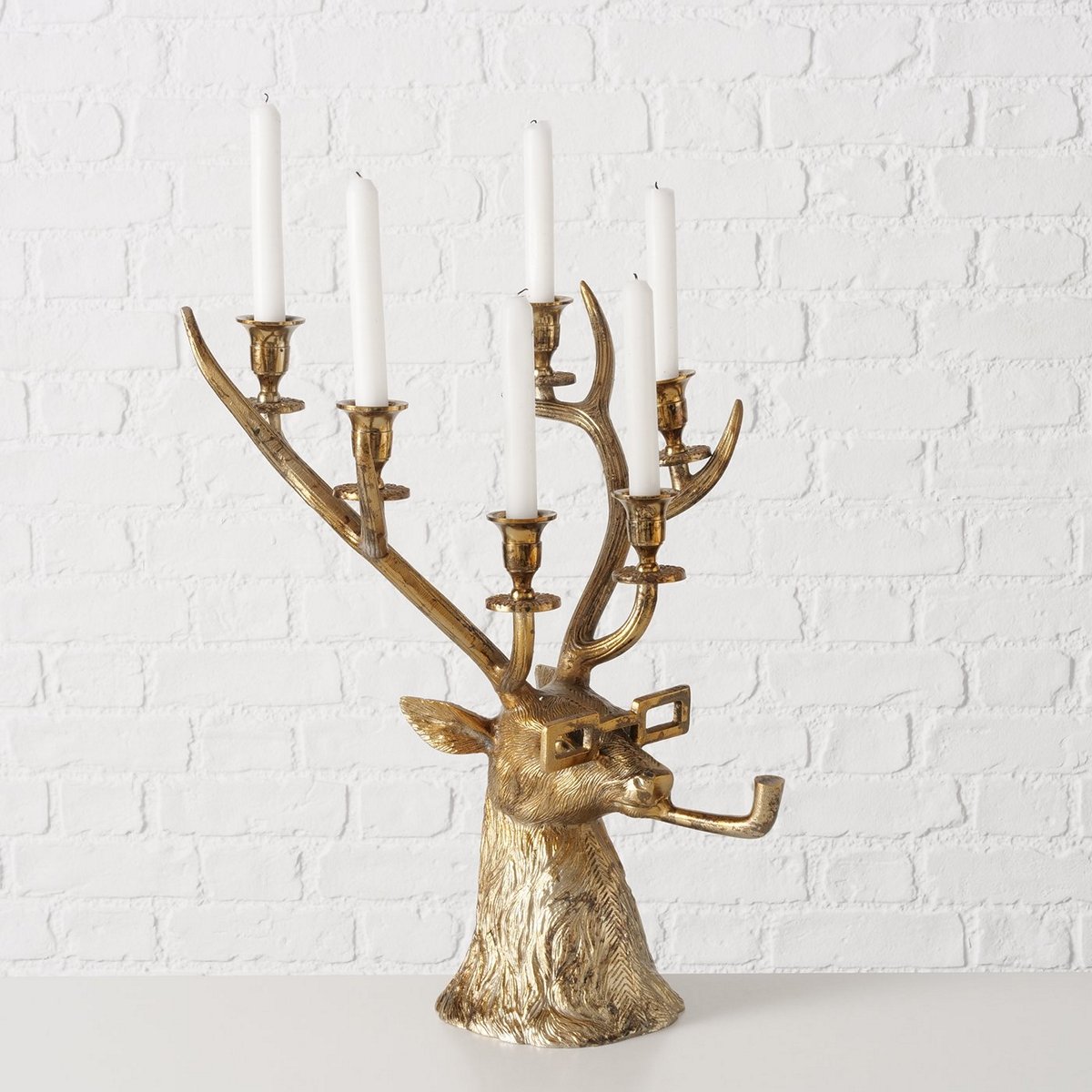Candle holder Fin, Deer, H 50,5 cm, L 36 cm, Aluminium aluminium antique silver
