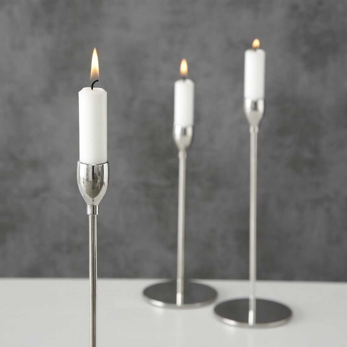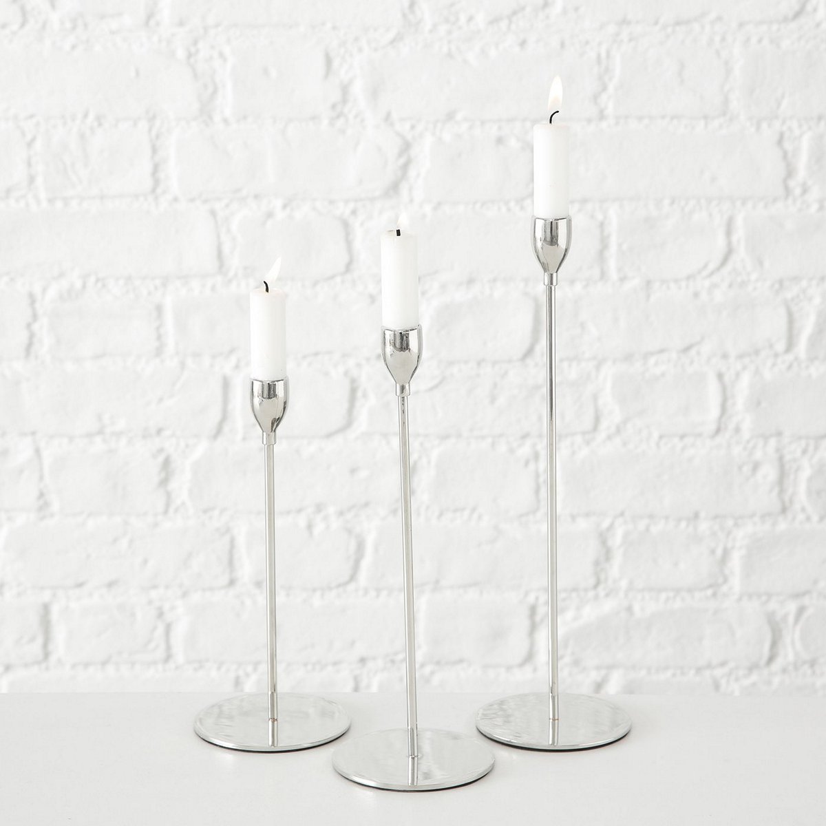 Candle holder Malte, 3 p., Set 3, Round, H 23-33 cm, Iron, Silver iron silver