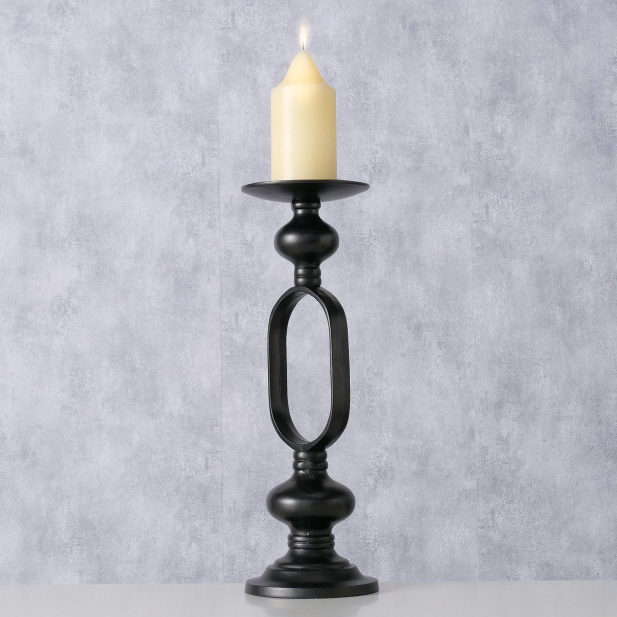 Candle holder Plokky, Round, H 54 cm, Aluminium, Black aluminium black
