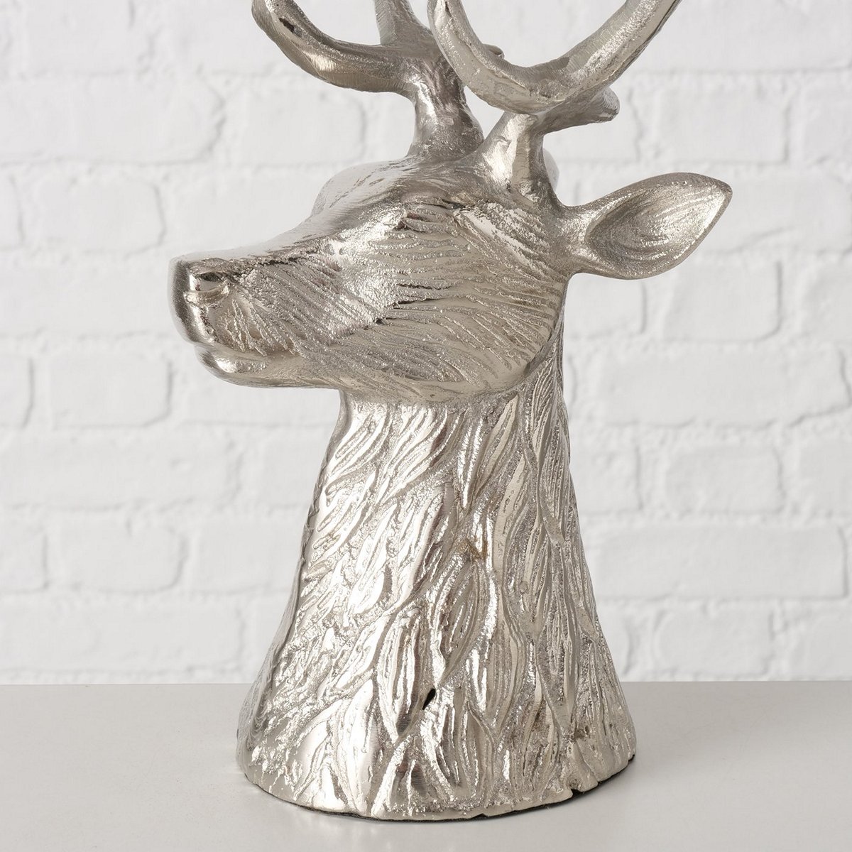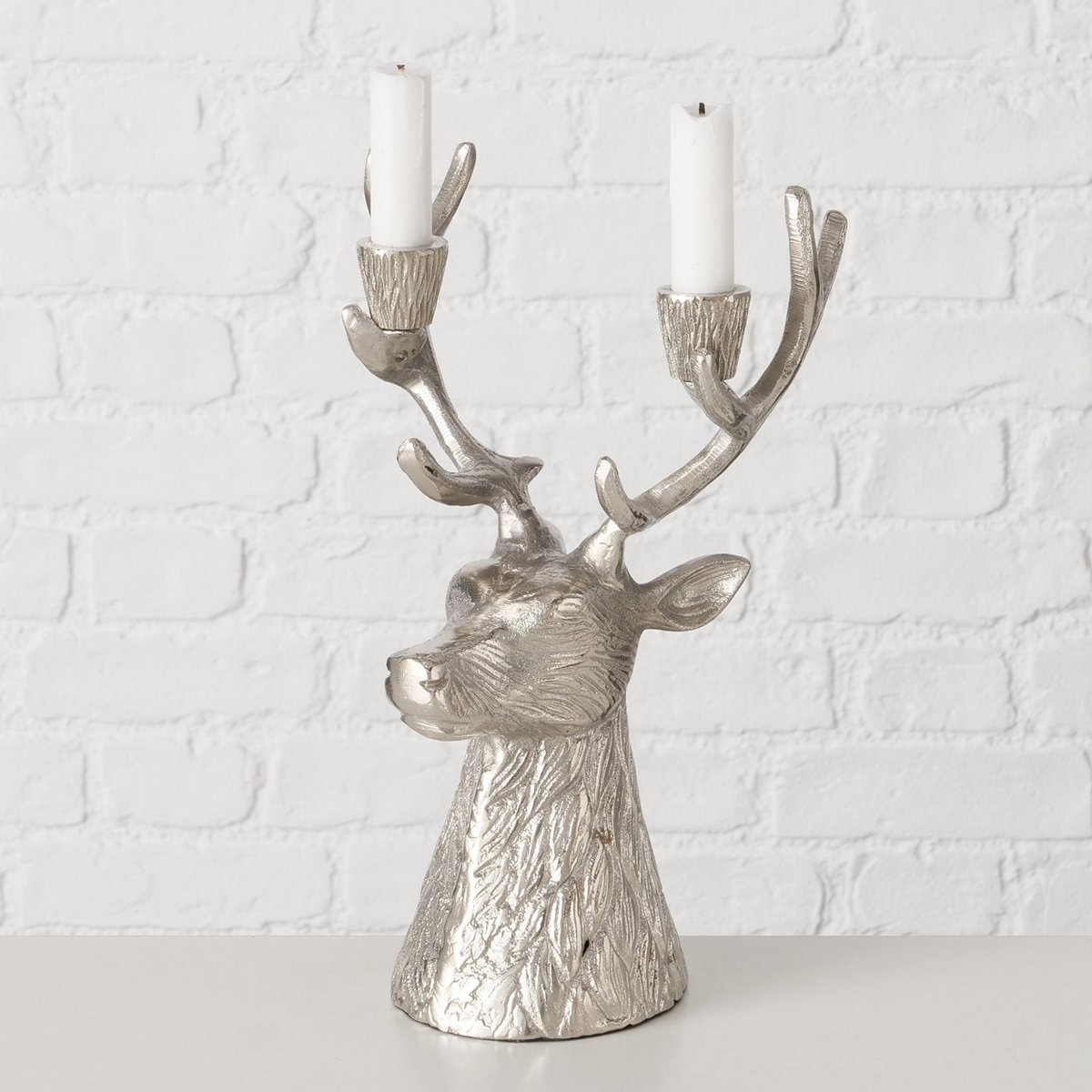 Candle holder Theodor, Deer, H 31,5 cm, L 20 cm, Alu nickle alu nickle silver