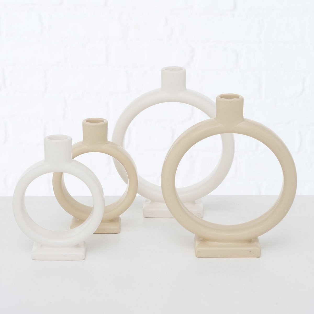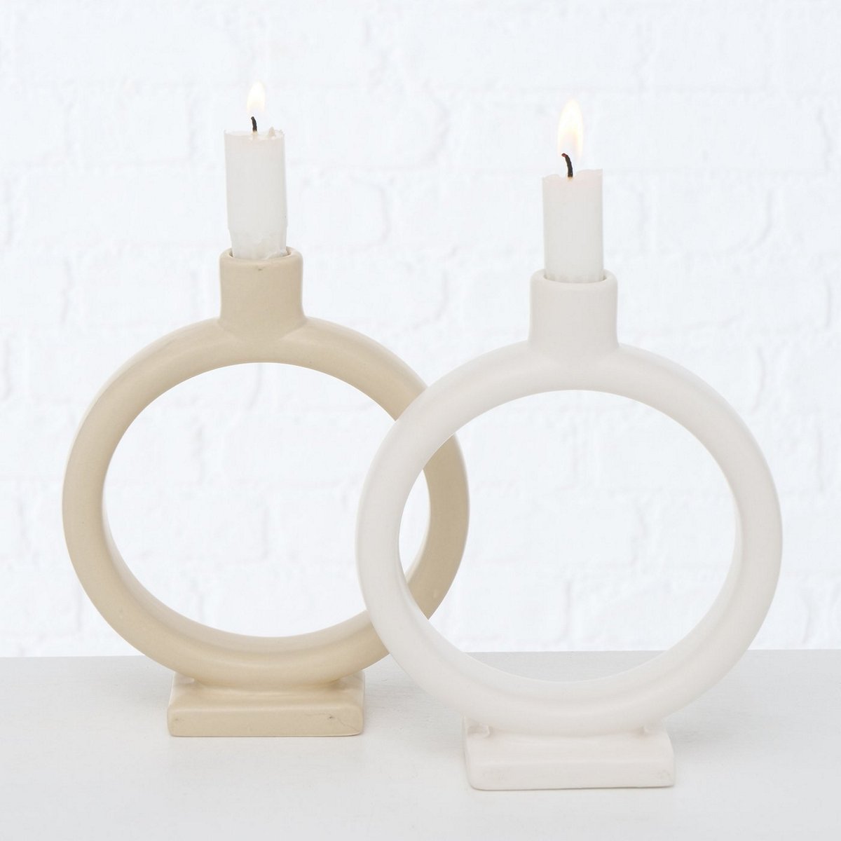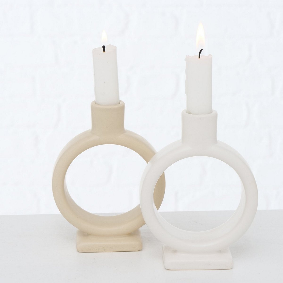 Candle holder Valongo, 2 p., 2 ass., Set 2, Round, H 14-20 cm, L 11-16 cm, Earthenware Earthenware colour-mix