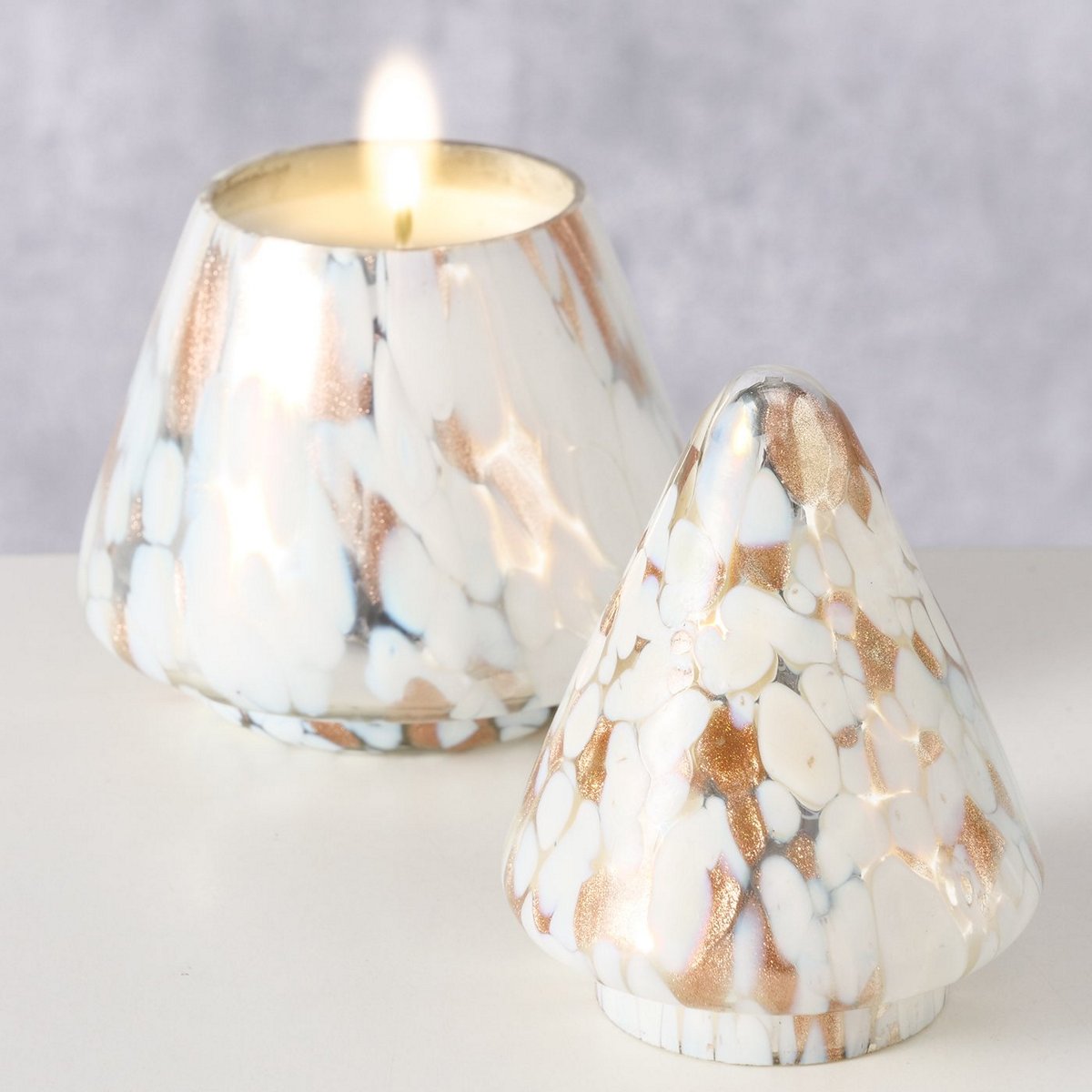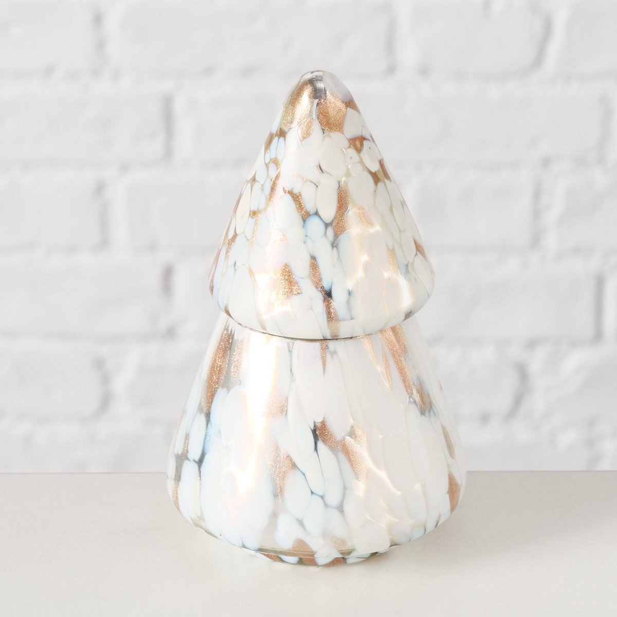 Candle pot Dotti , Christmas tree, H 14 cm, D 9,5 cm, Glass lacquered, Paraffin mixed materials colour-mix