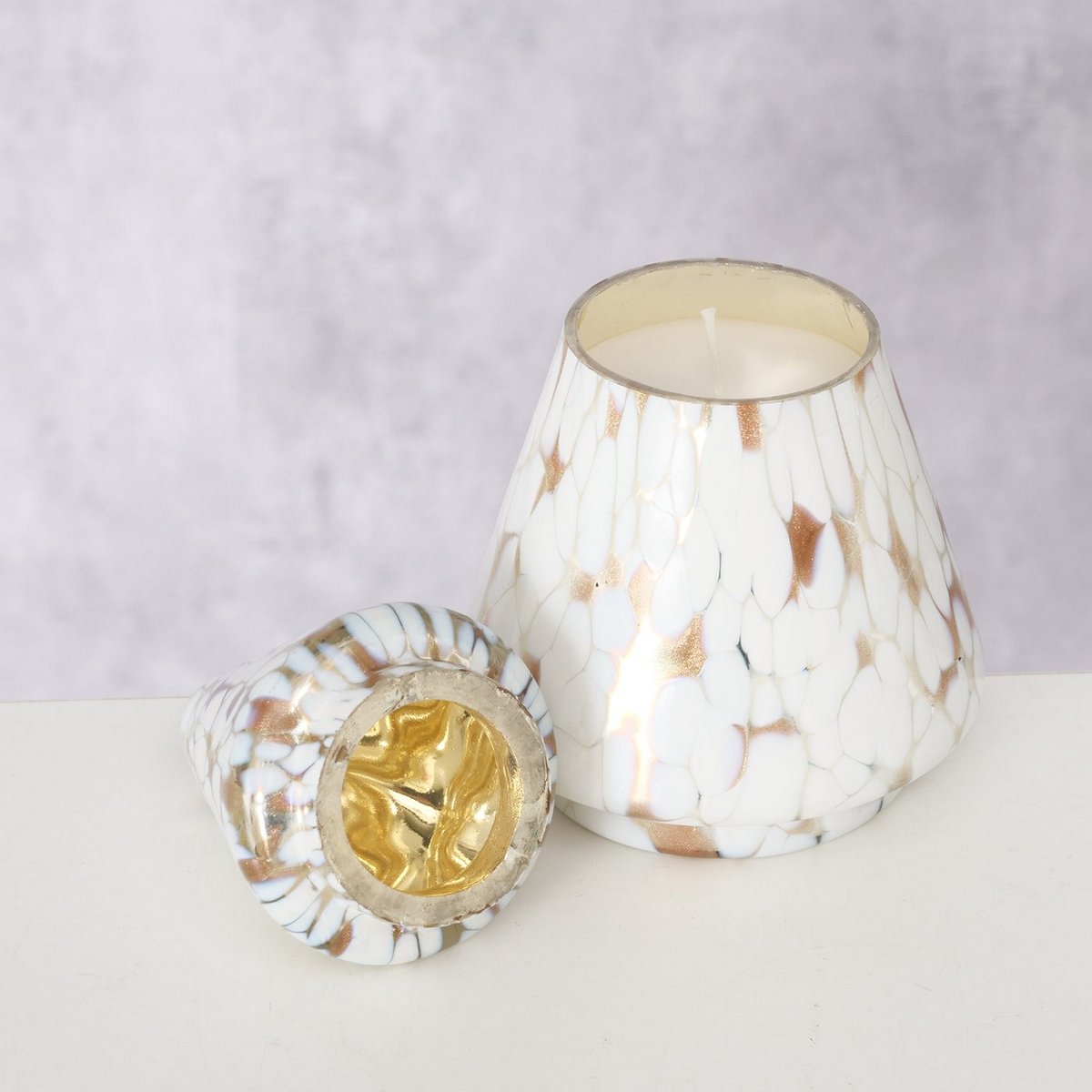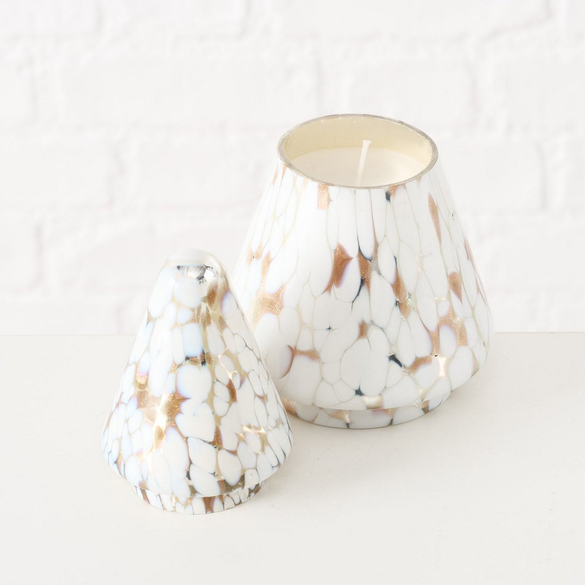 Candle pot Dotti , Christmas tree, H 17,5 cm, D 10 cm, Glass lacquered, Paraffin mixed materials colour-mix