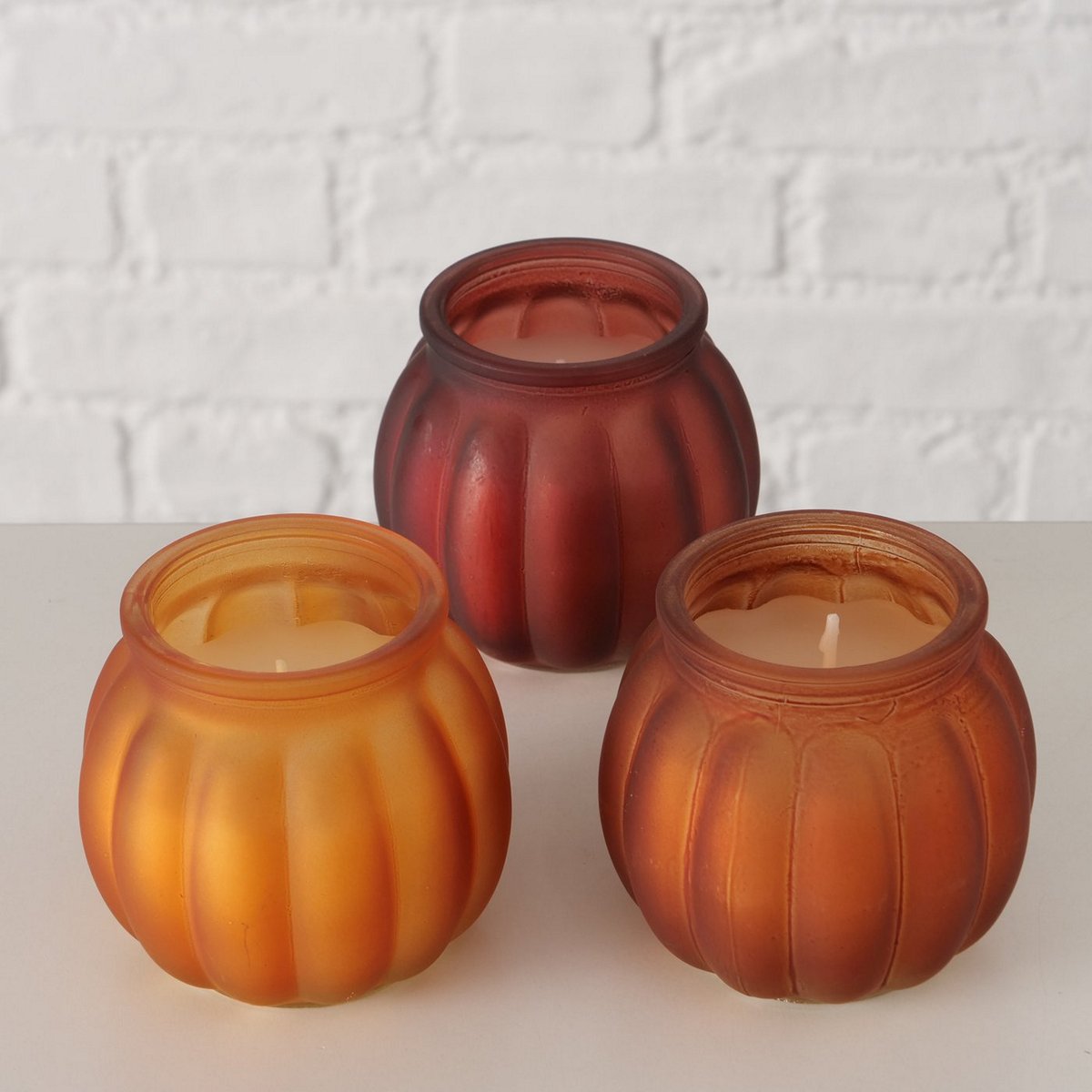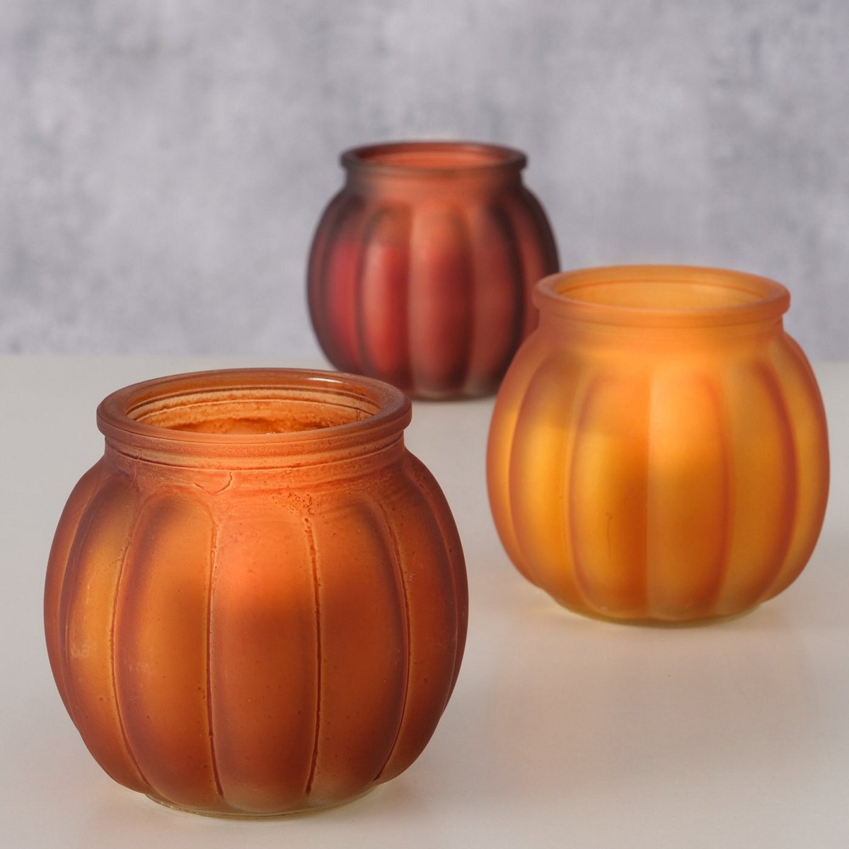 Candle pot Hokka, 3 ass., Pumpkin, H 7,3 cm, D 8 cm, Glass lacquered, Wax mixed materials colour-mix