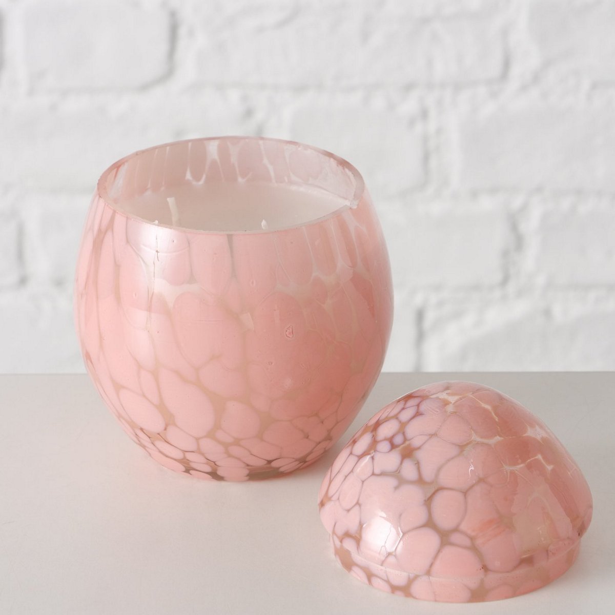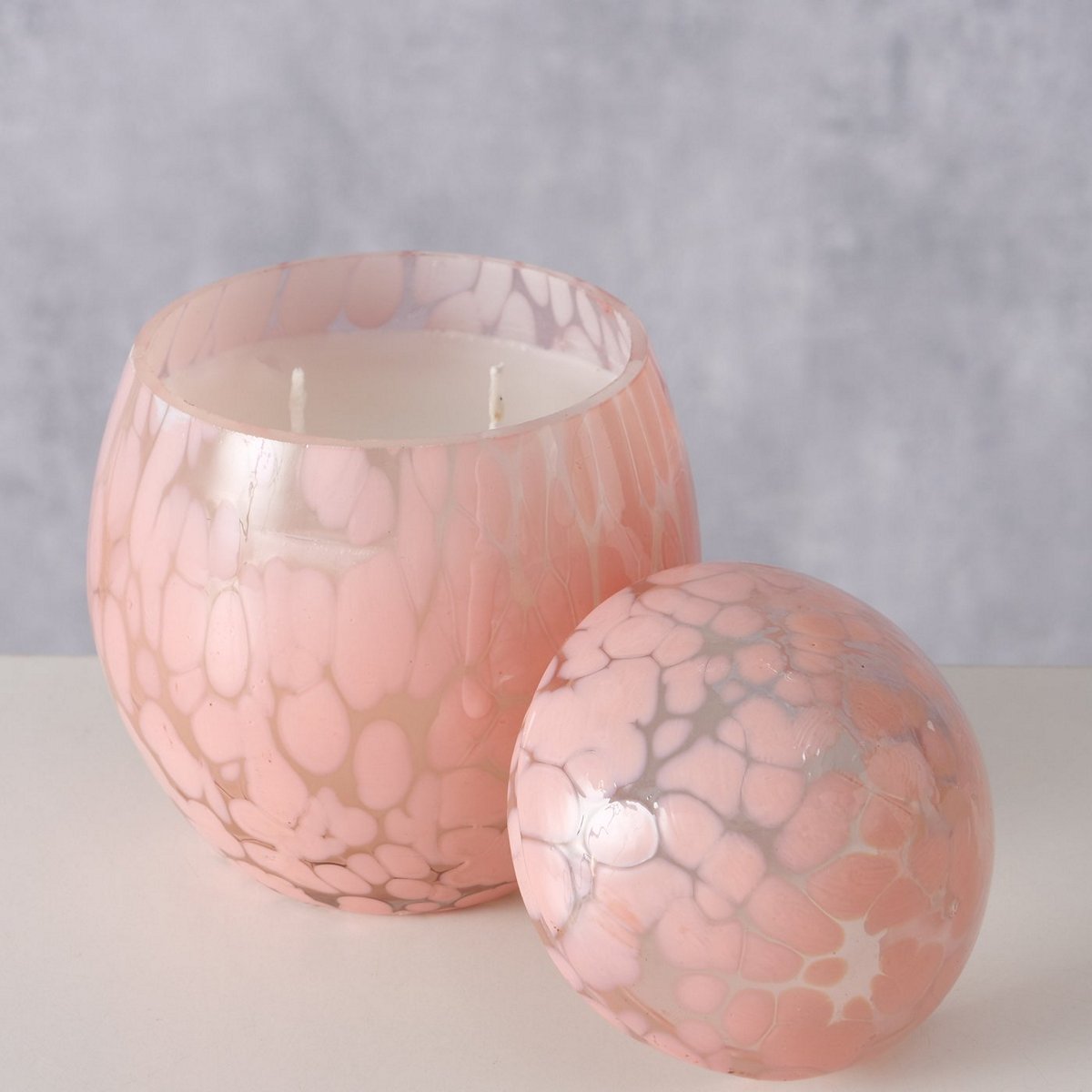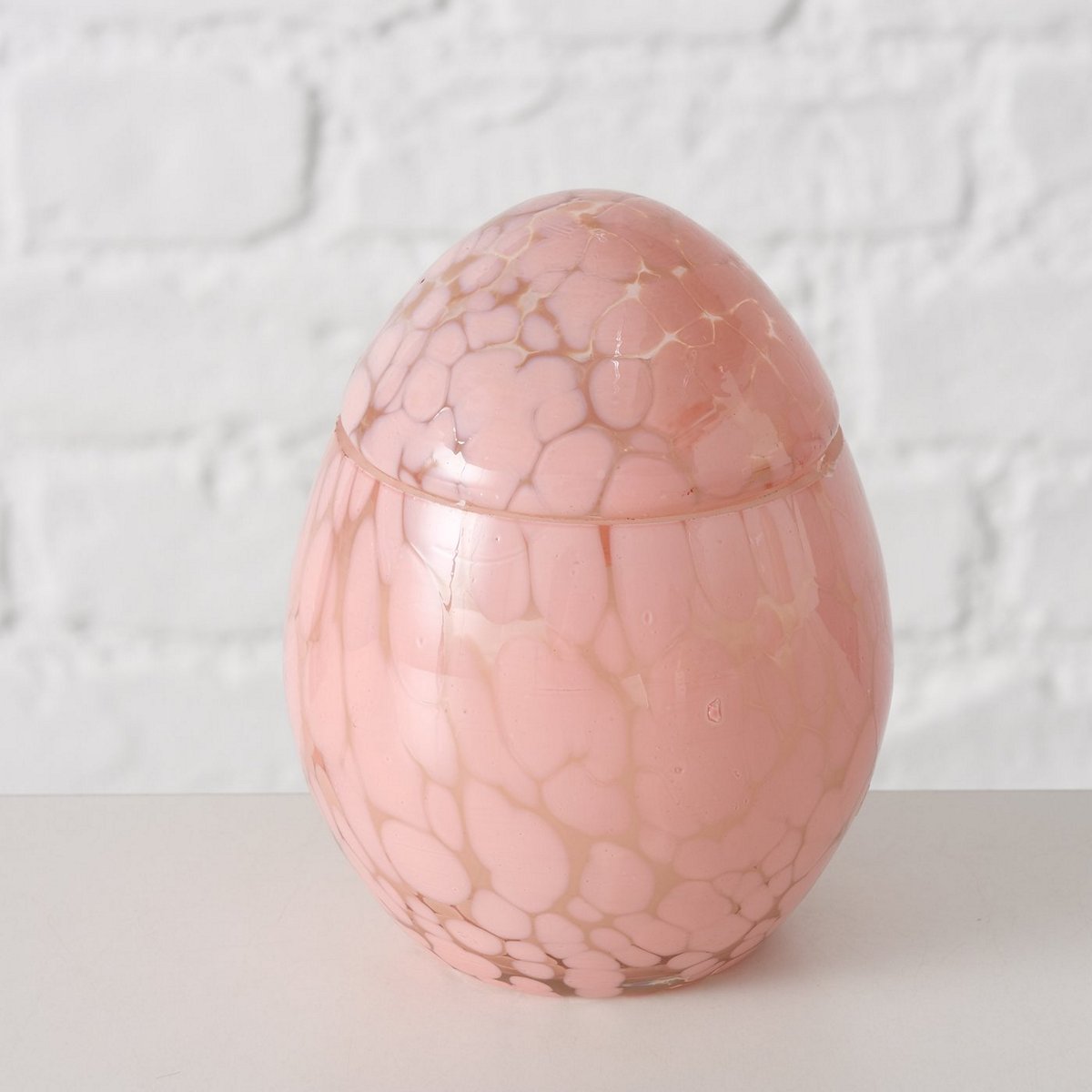 Candle pot Paska, Egg, H 11,5 cm, D 9 cm, Glass lacquered, Paraffin mixed materials darkrose