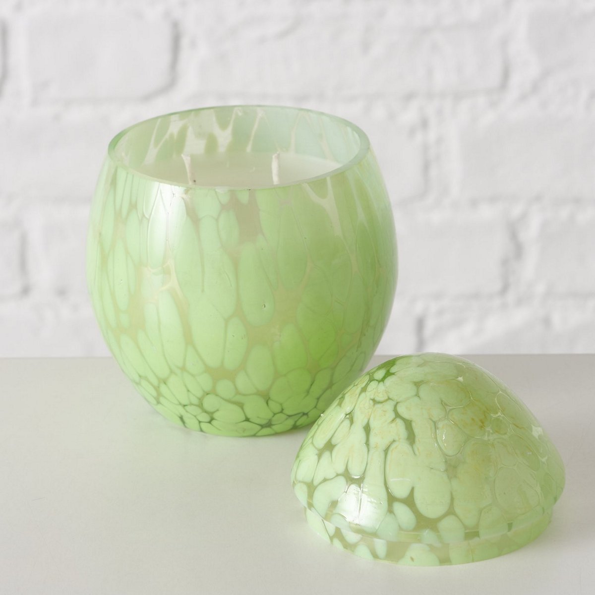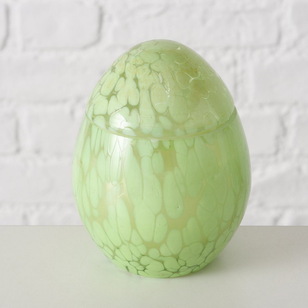 Candle pot Paska, Egg, H 11,5 cm, D 9 cm, Glass lacquered, Paraffin mixed materials light green