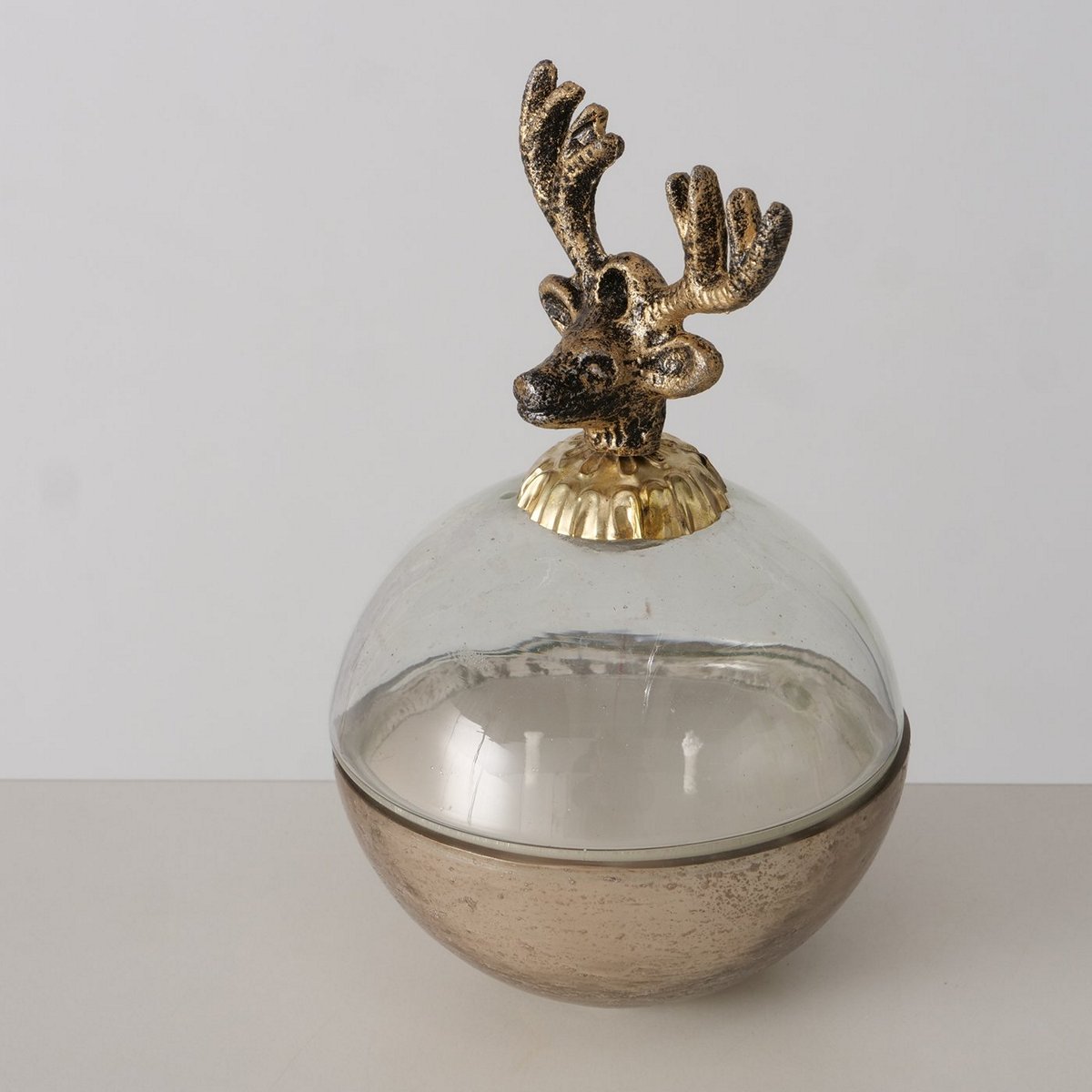Candle pot Sutton, Ball, H 14 cm, D 9 cm, Iron laquered, Glass lacquered, Paraffin mixed materials colour-mix