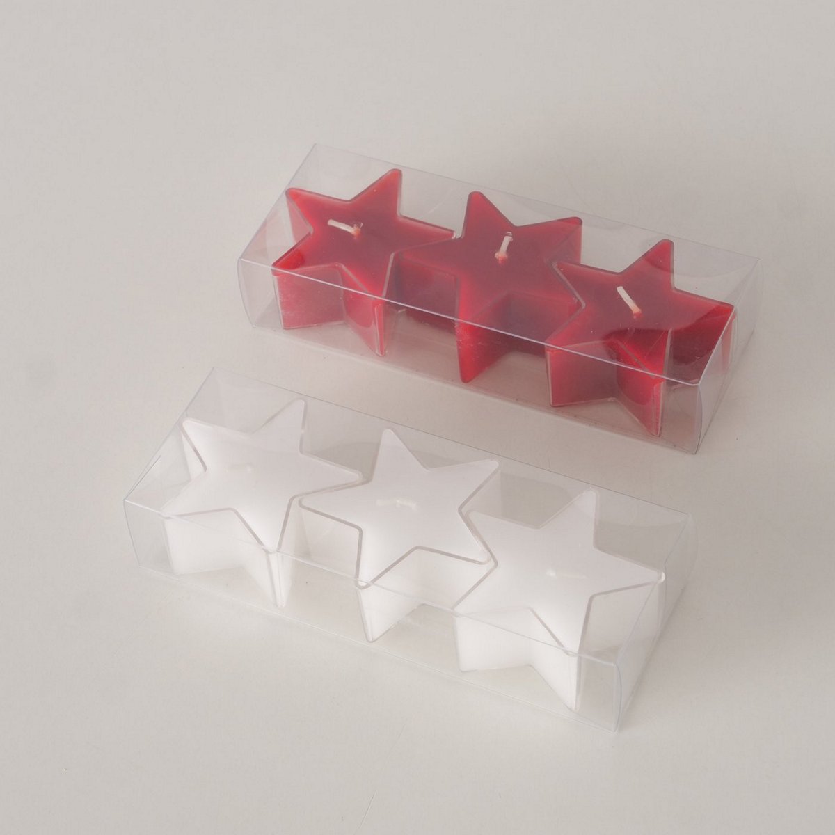 Candle Star, 3 p., 2 ass., H 2,5 cm, Plastic, Wax, No, Single-colour mixed materials colour-mix