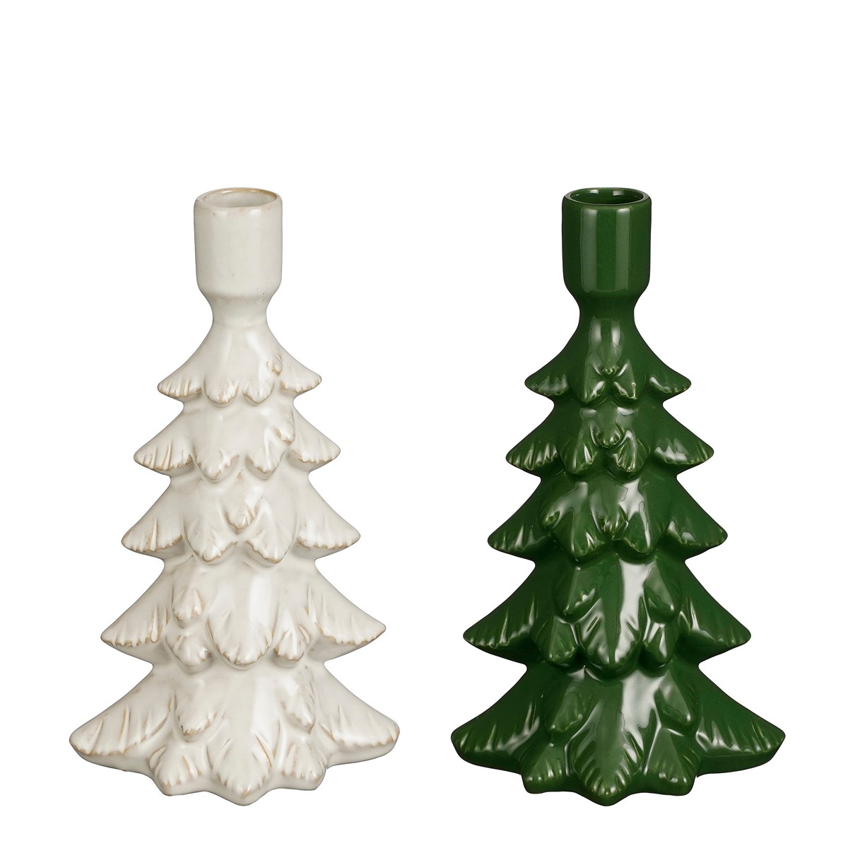 HomeSHOPCHRISTMAS COLLECTIONWindLights Candleholder tree green white 2 assorted – h21,5xd7cm ceramic