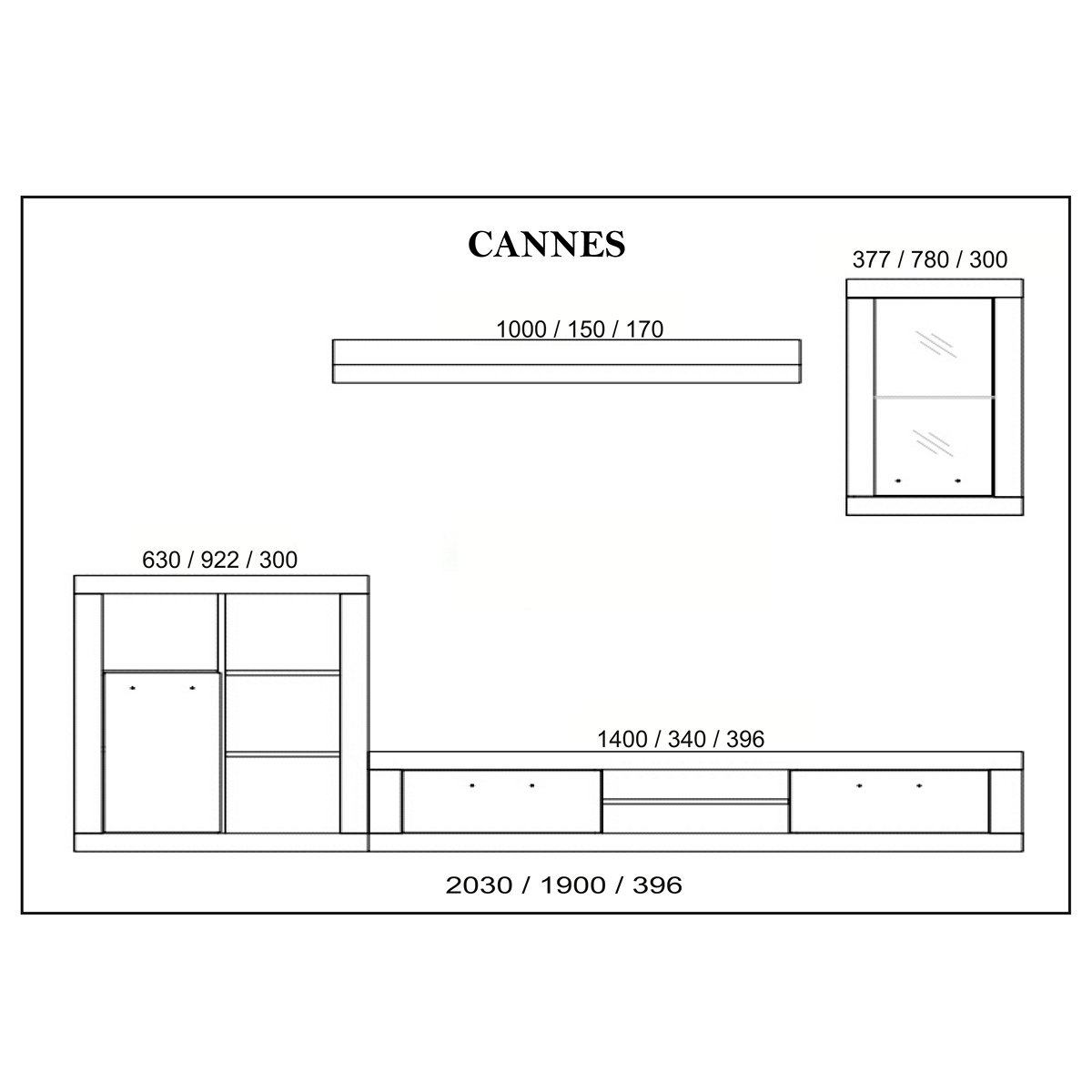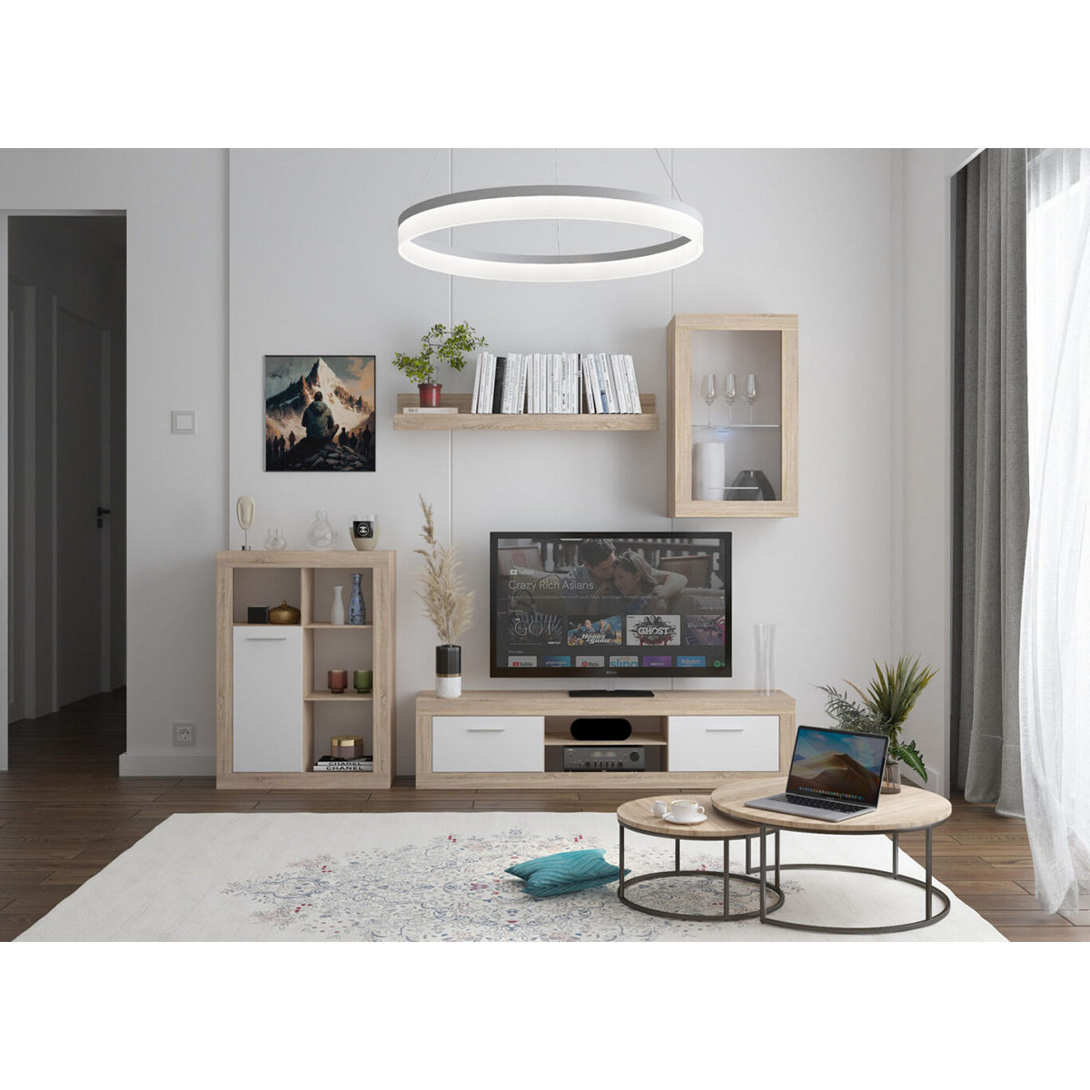 CANNES SET/4 SONOMA OAK WITH LIGHTING (TV UNIT, SHELF, 2 SHOWCASE WALLS, CABINET) 203/190/40cm melamine (assembling instructions included)