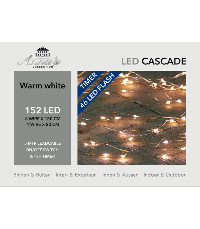 CASCADE FLASH LIGHTS SILVER WIRE 152L/8X150 + 4X80CM LED WARM WHITE WITH 46 FLASH – 5M LEADCABLE TRANSPARENT – DC 6V IP4