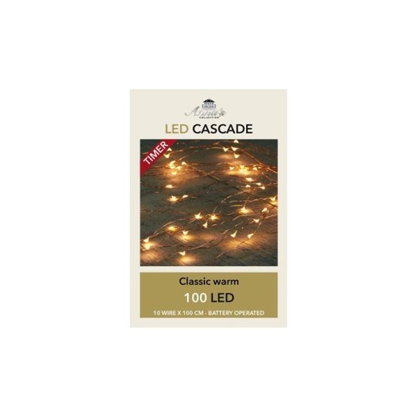 B.O.T. LED CASCADE COPPER WIRE 100L/10X1M 6/18H TIMER LED CLASSIC - 50CM LEADCABLE TRANSPARENT - B.O. 3X AA/IP20 - PET