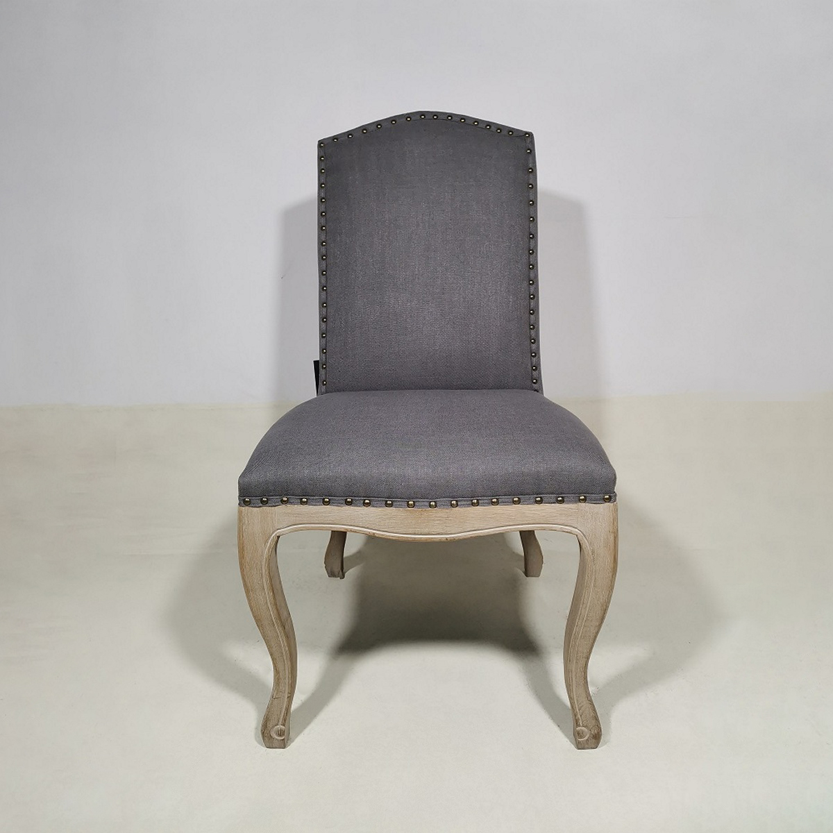 CHAIR RUBBER WOOD ANT.GREY W/FINE LINES KSF 25022 GREY W/METAL NAIL ANTIQUE BRONZE W53*D45*H46/102cm