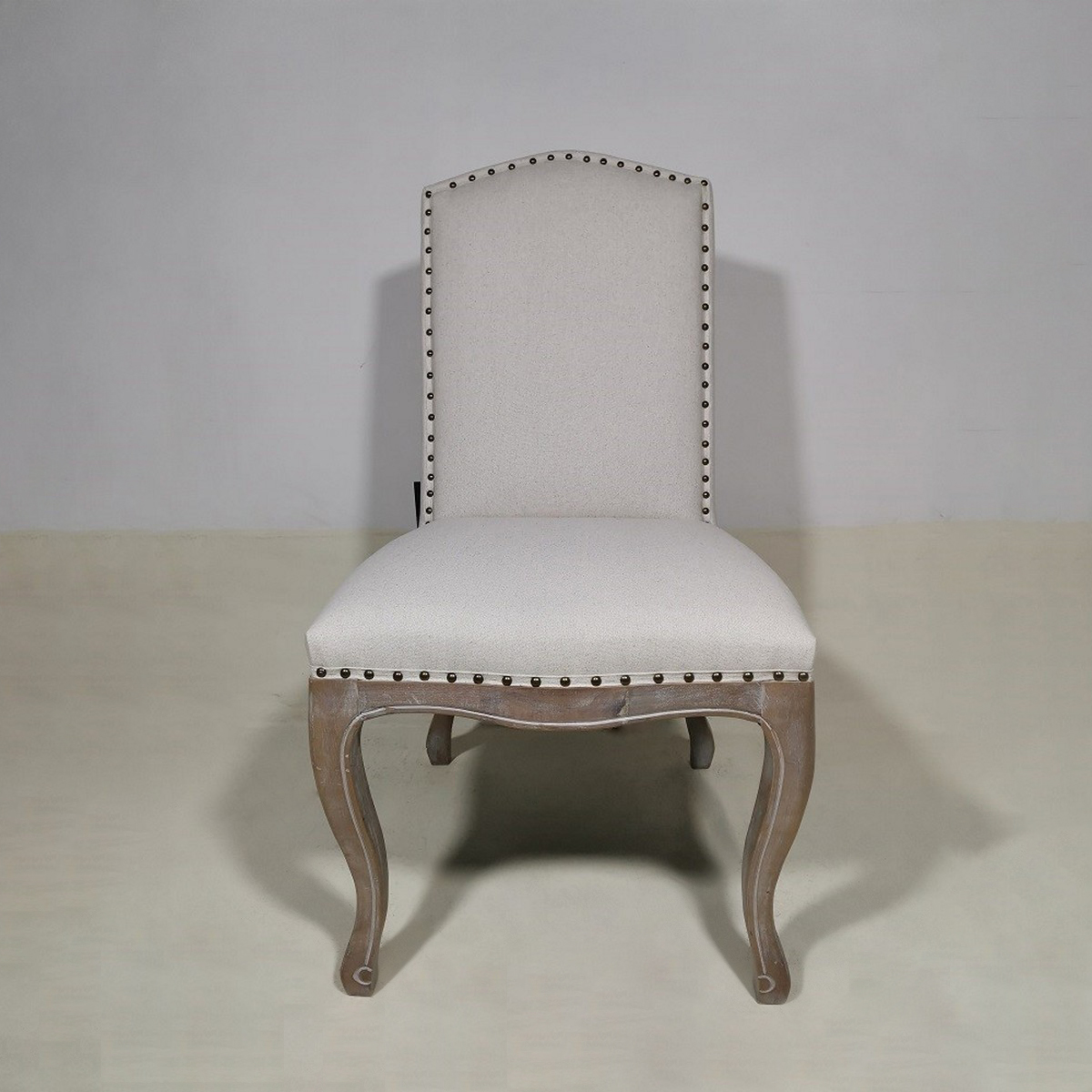 HomeSHOPFURNITUREChairs - Sunbeds CHAIR RUBBER WOOD COLOR C10 KSF 25000 LINEN IVOIRE W/METAL NAIL ANTIQUE BRONZE W53*D45*H46/102cm
