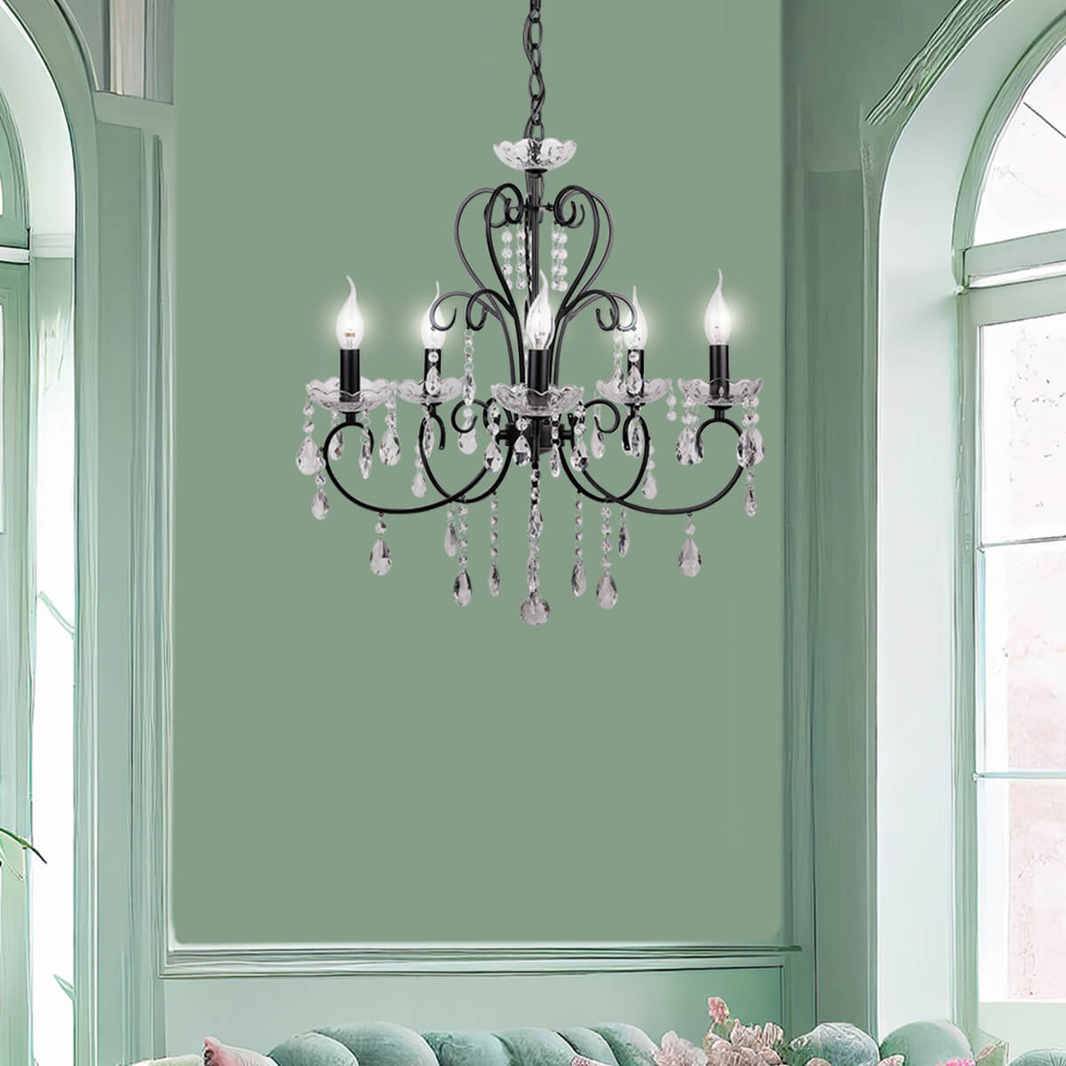 CHANDELIER pendant 5*40W E14 Black metal frame crystals