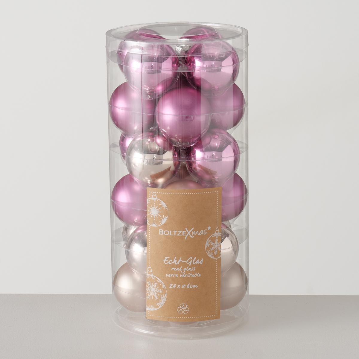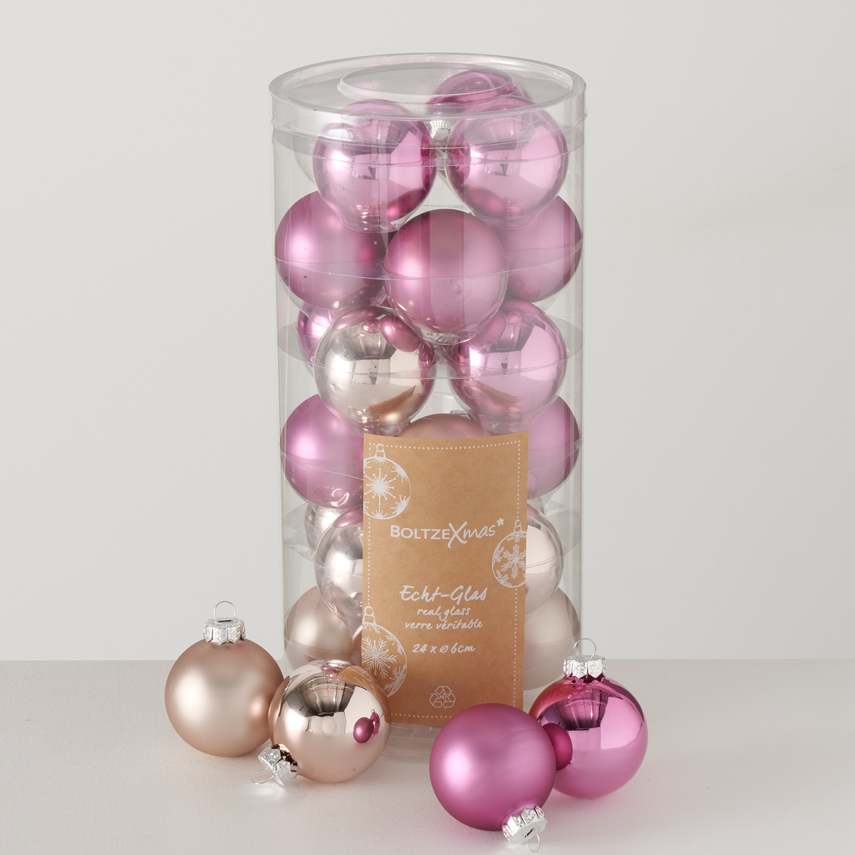 Christmas ball , 24 p., D 6,00 cm, Glass laquered, Multi-coloured, Dark rose, Light rose glass laquered colour-mix