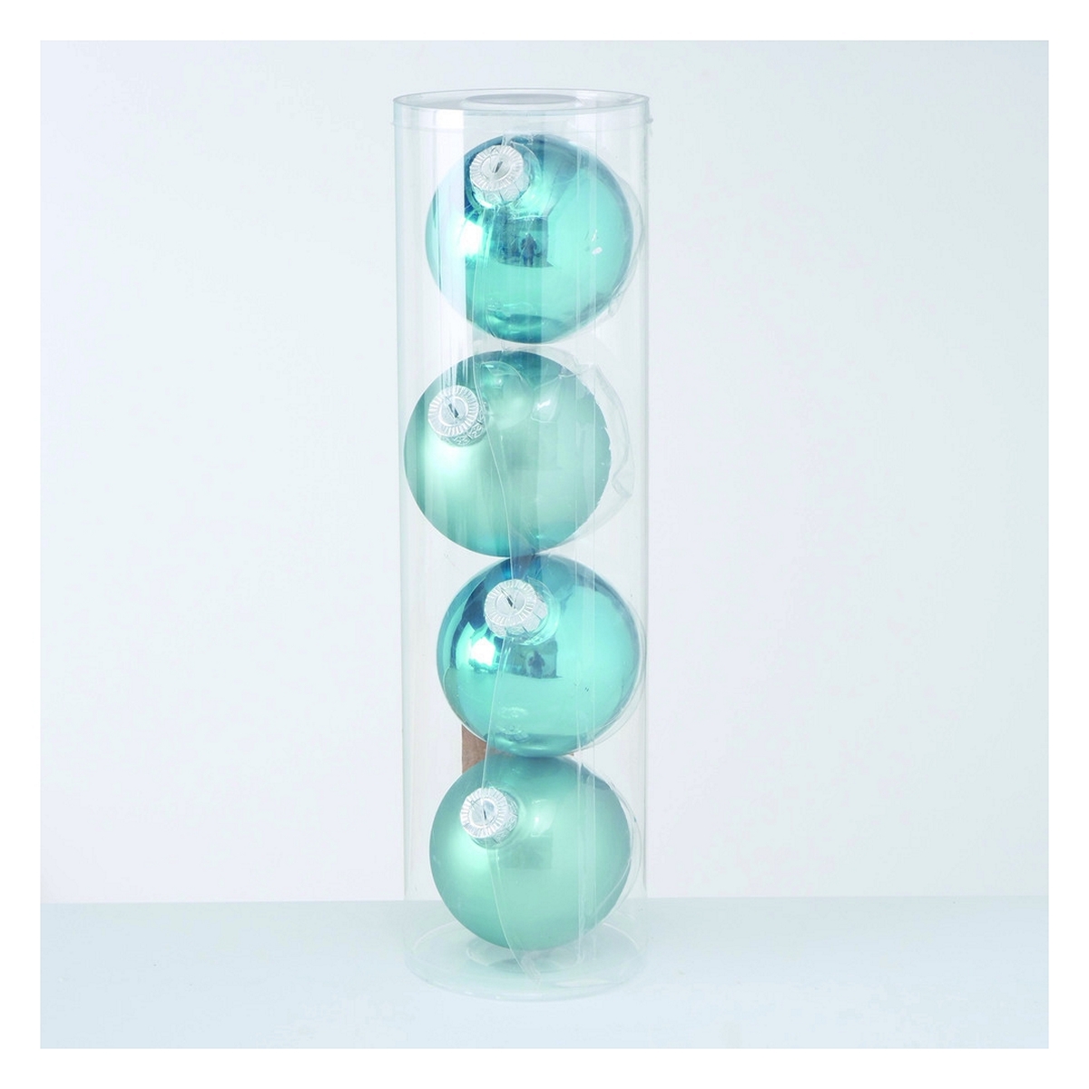 Christmas ball , 4 p., D 10,00 cm, Glass laquered, Single-colour, Light turquoise glass laquered light turquoise