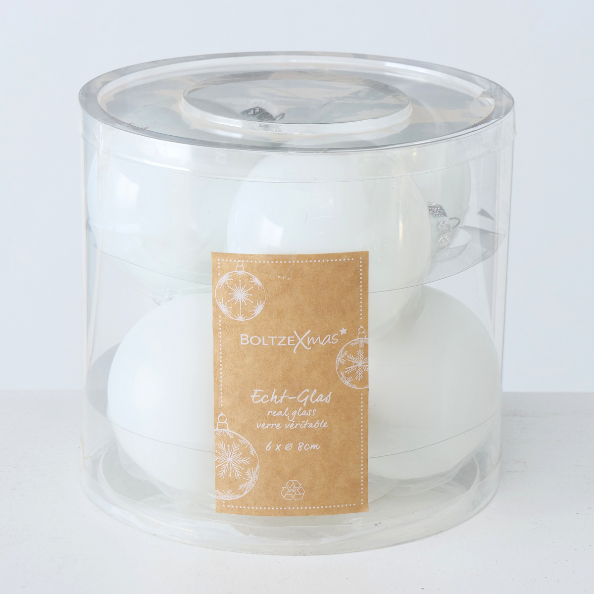 Christmas ball , 6 p., Ball, D 8 cm, Glass laquered, White glass laquered white