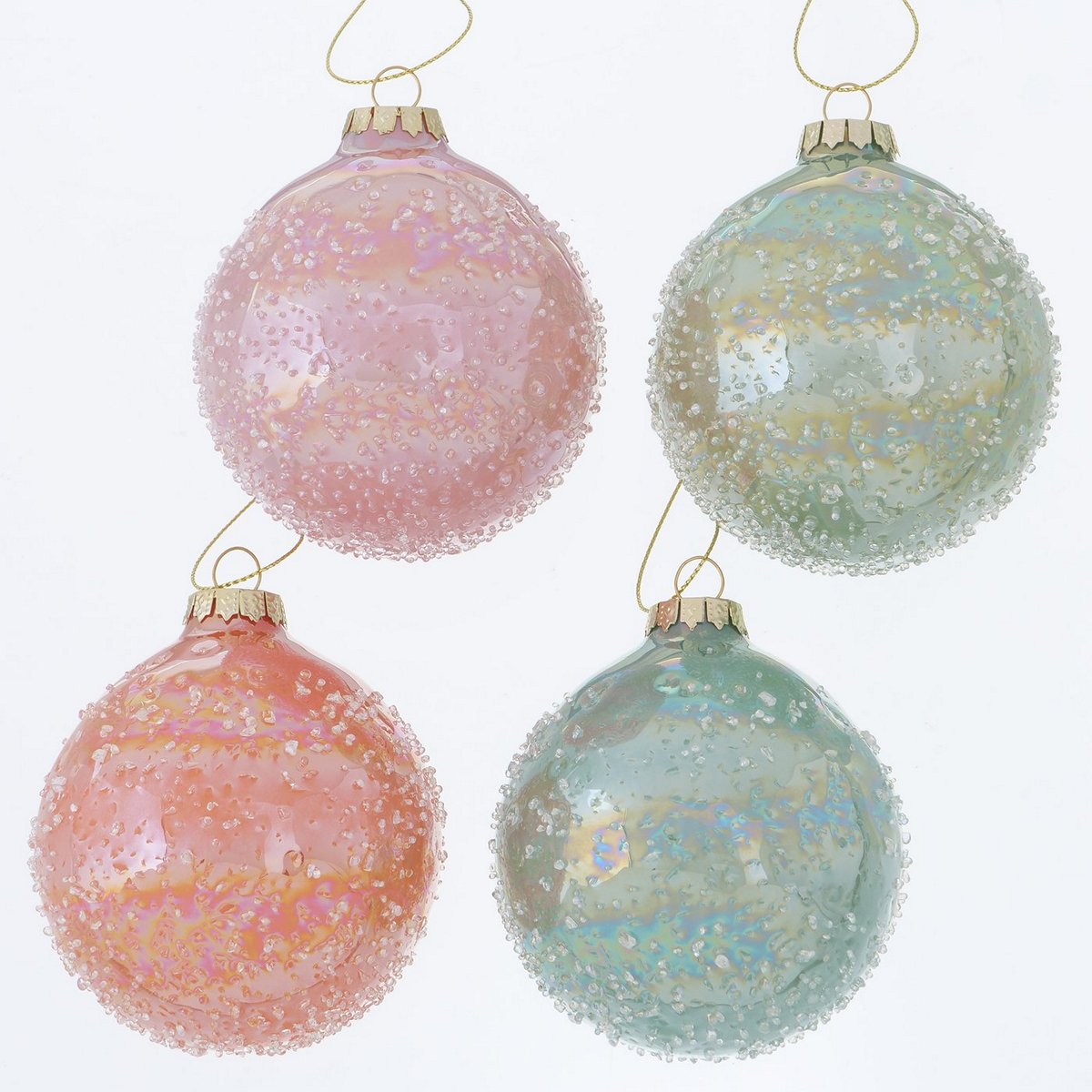 Christmas ball Irisella, 4 ass., Counter display, D 8,00 cm, Glass laquered, Apricot, Light blue, Light green, Light ros