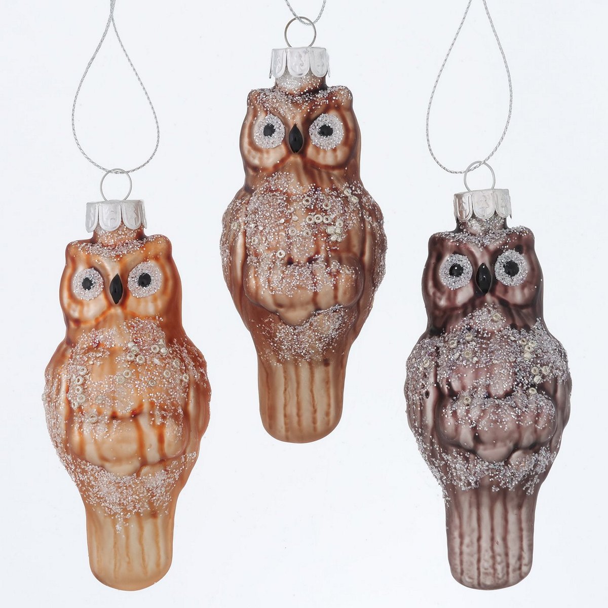 Christmas pendant Martha, 3 ass., Owl, H 10 cm, Glitter, Mat, Shiny, With hanger glass laquered colour-mix