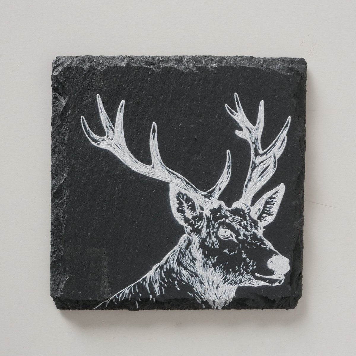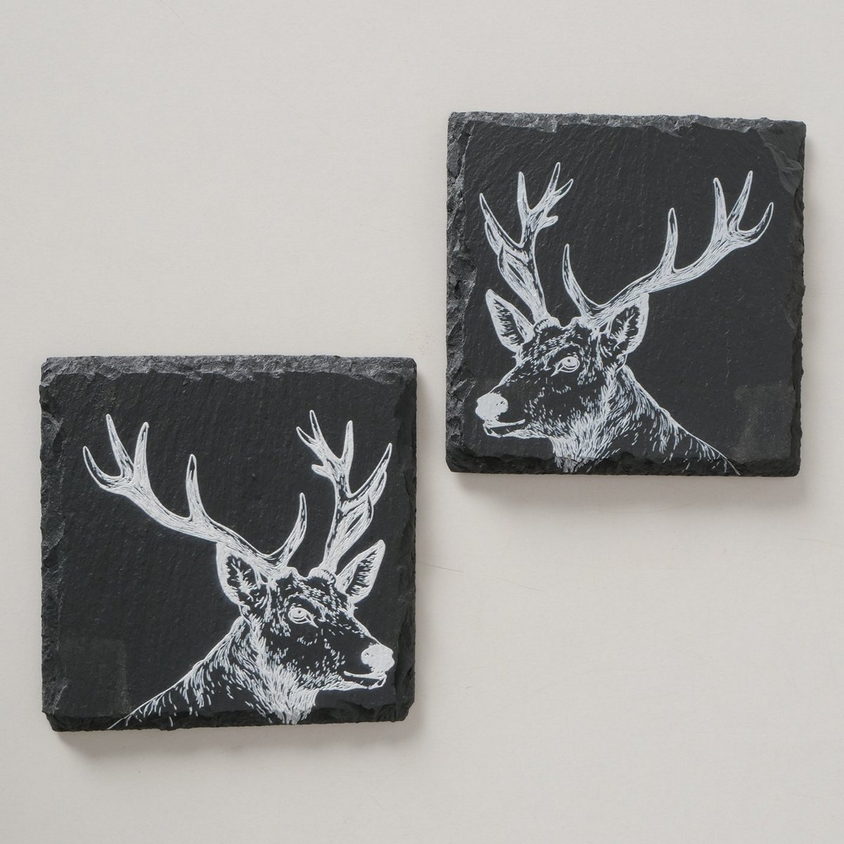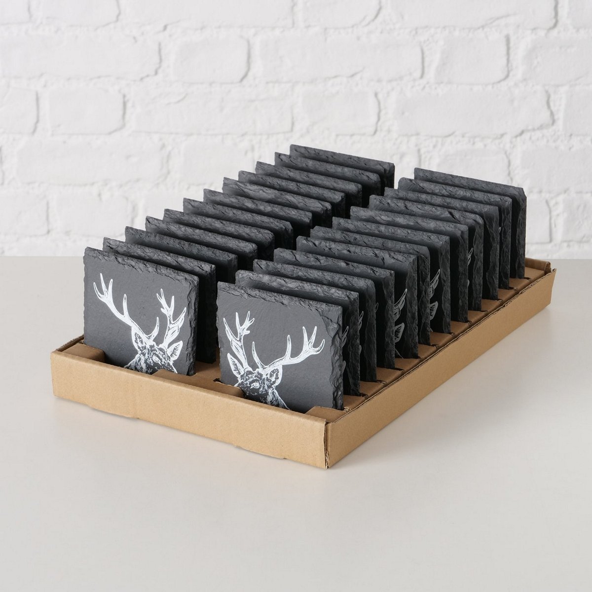 Coaster Moritz, 2 ass., W 10,5 cm, Slate, Mat, Multi-coloured, Motif slate black