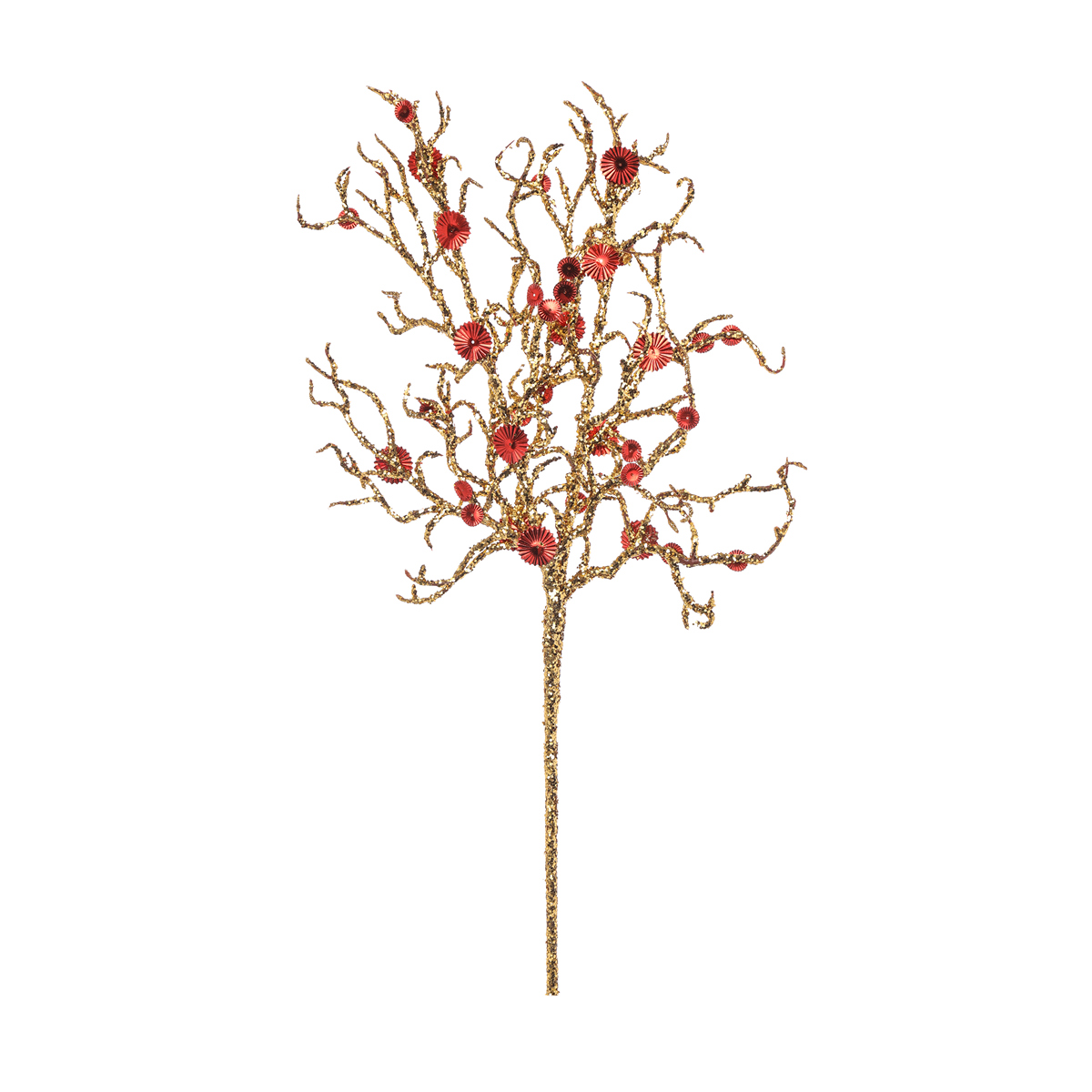 CORAL GOLD BRANCH WITH GLITTER AND RED FLOWER CM.55