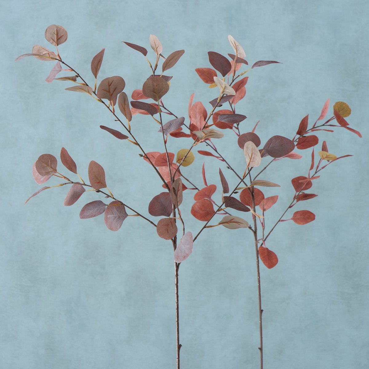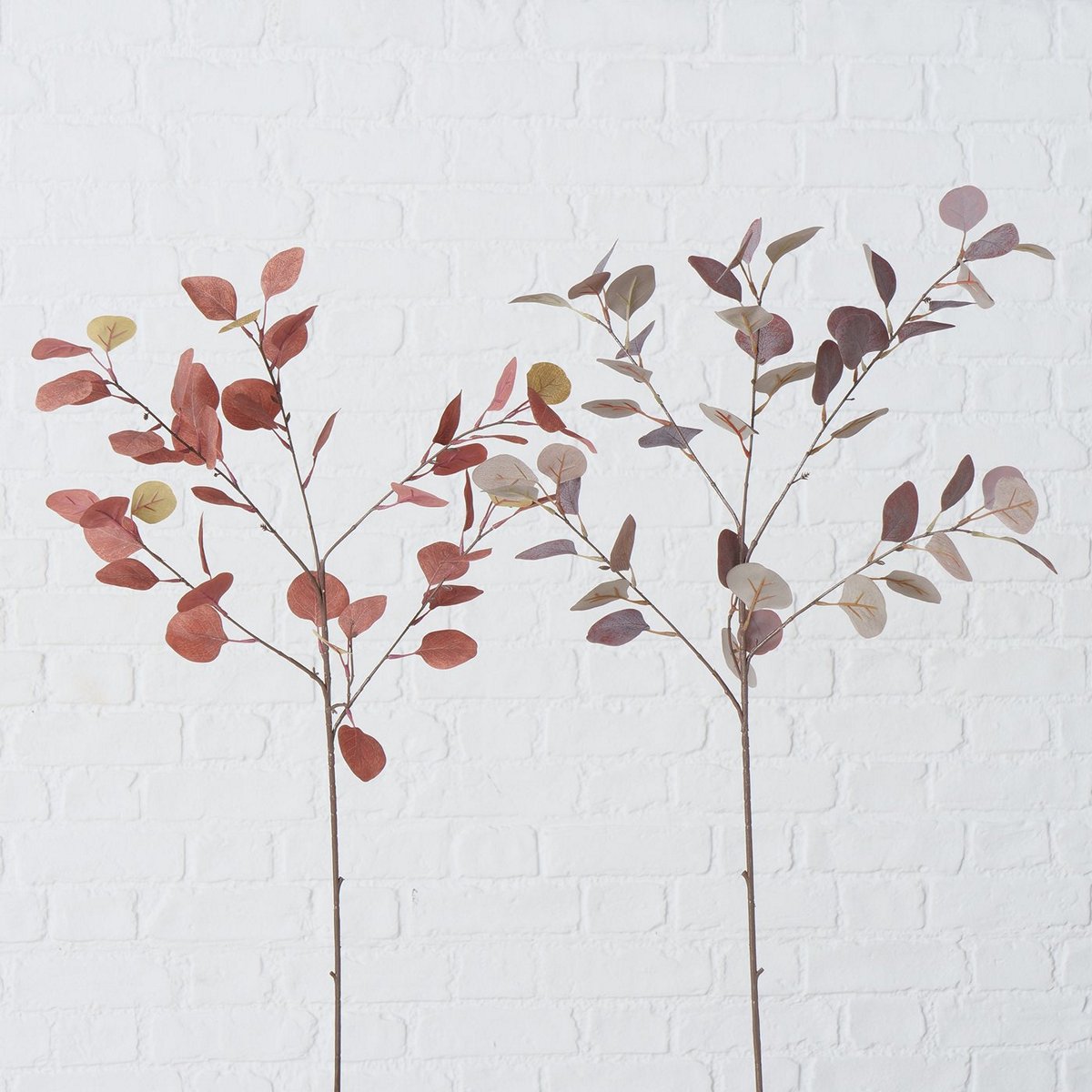 Decorative branch , 2 ass., Eucalyptus, Indoor, Plastic, Dark orange, Red-brown plastic colour-mix