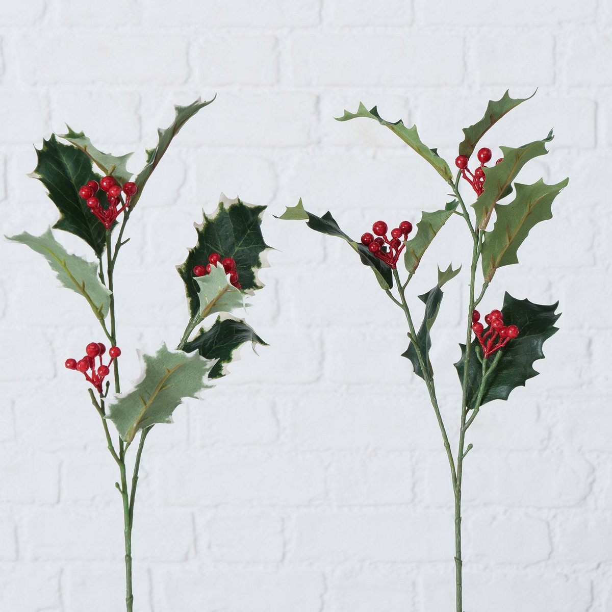 Decorative branch , 2 ass., Holly (Ilex), Indoor, Plastic, Polyester, Green, Red mixed materials colour-mix