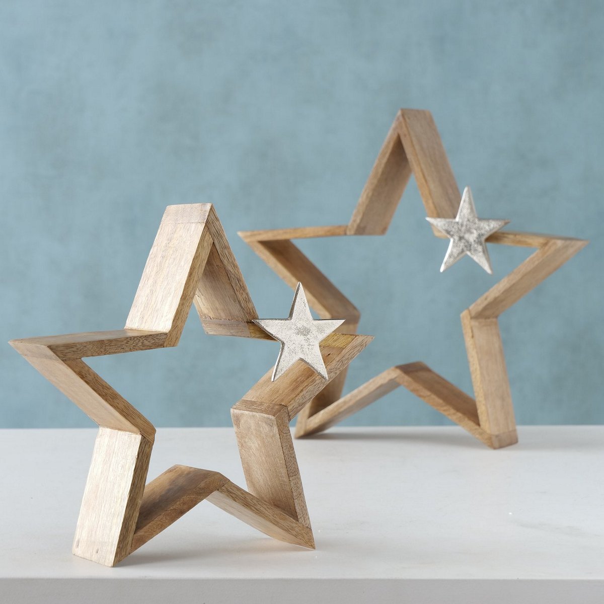 Decorative object Arbusta, 2 p., Set 2, Star, H 25-33 cm, Mango (Mangifera indica L.), Alu nickle, Multi-coloured mixed