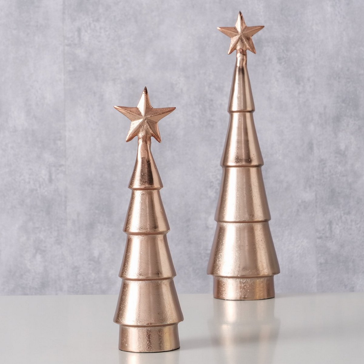Decorative object Cioppi, 2 p., Set 2, Christmas tree, H 26-36 cm, Aluminium, Single-colour aluminium rosegold
