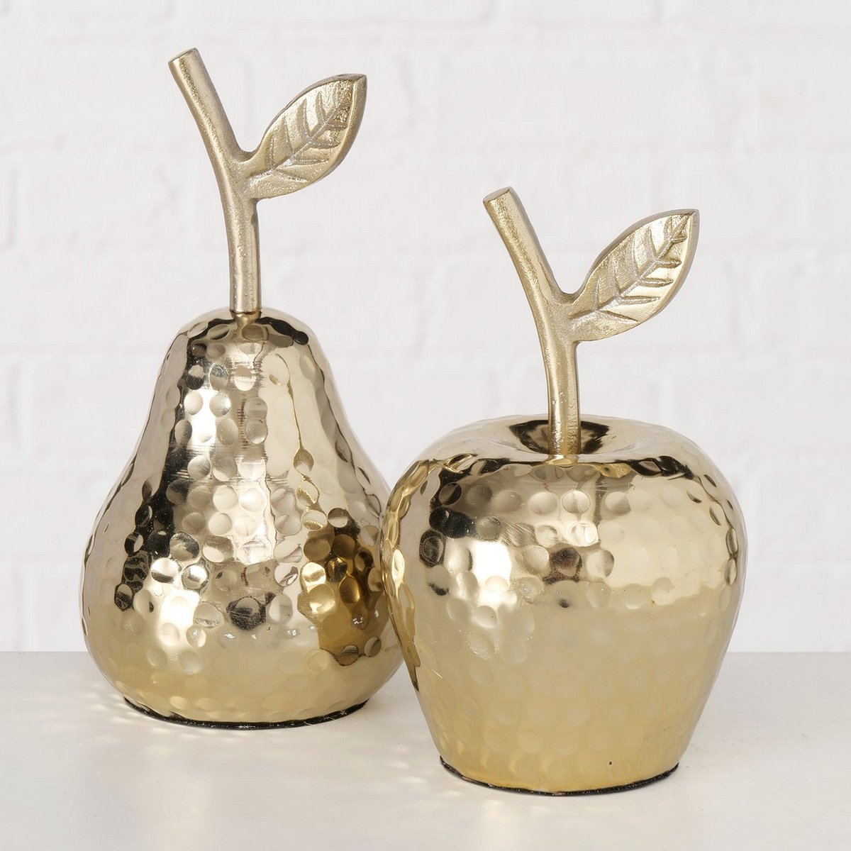 Decorative object Fruits, 2 ass., Pear, Apple, H 21,00 cm, Aluminium, Single-colour aluminium gold
