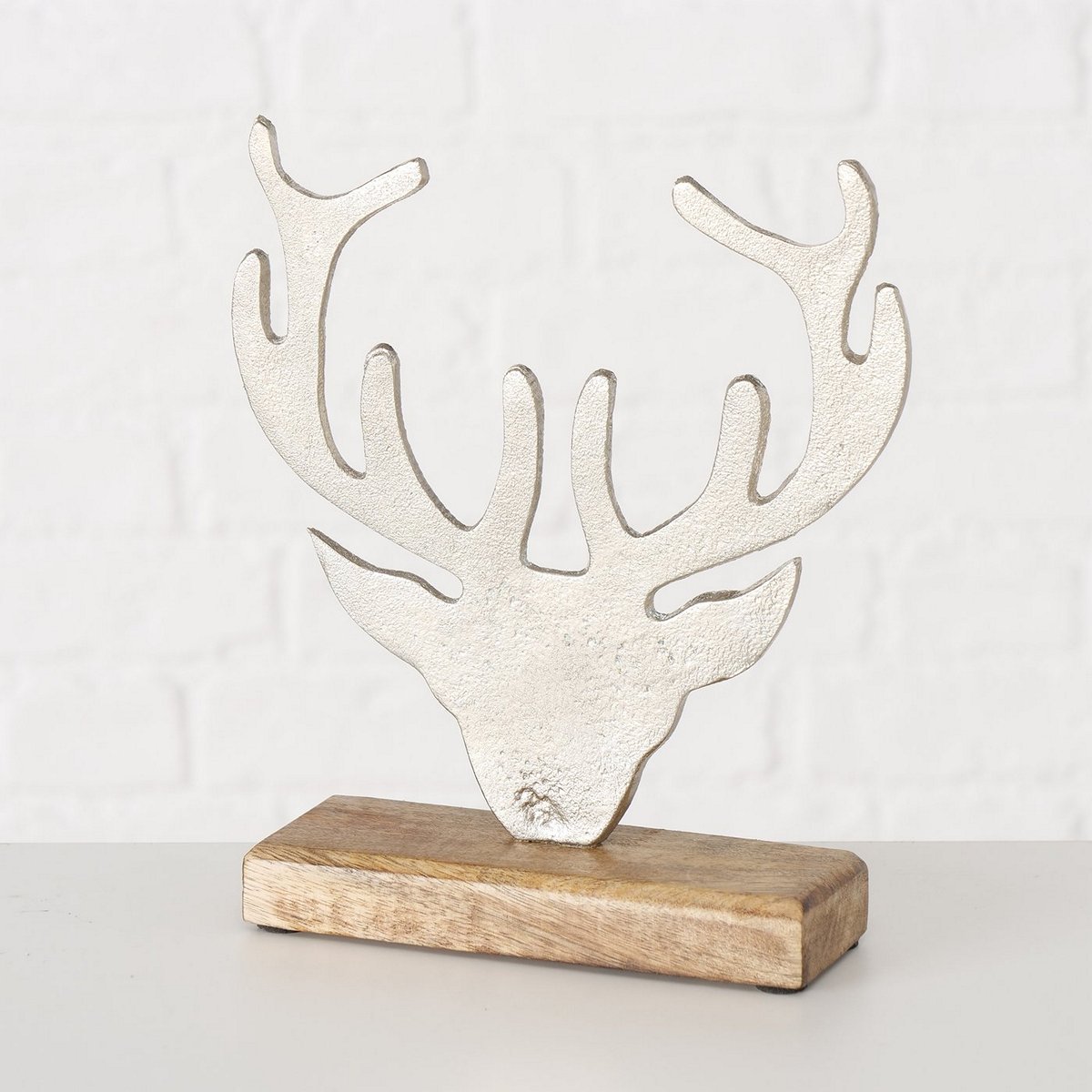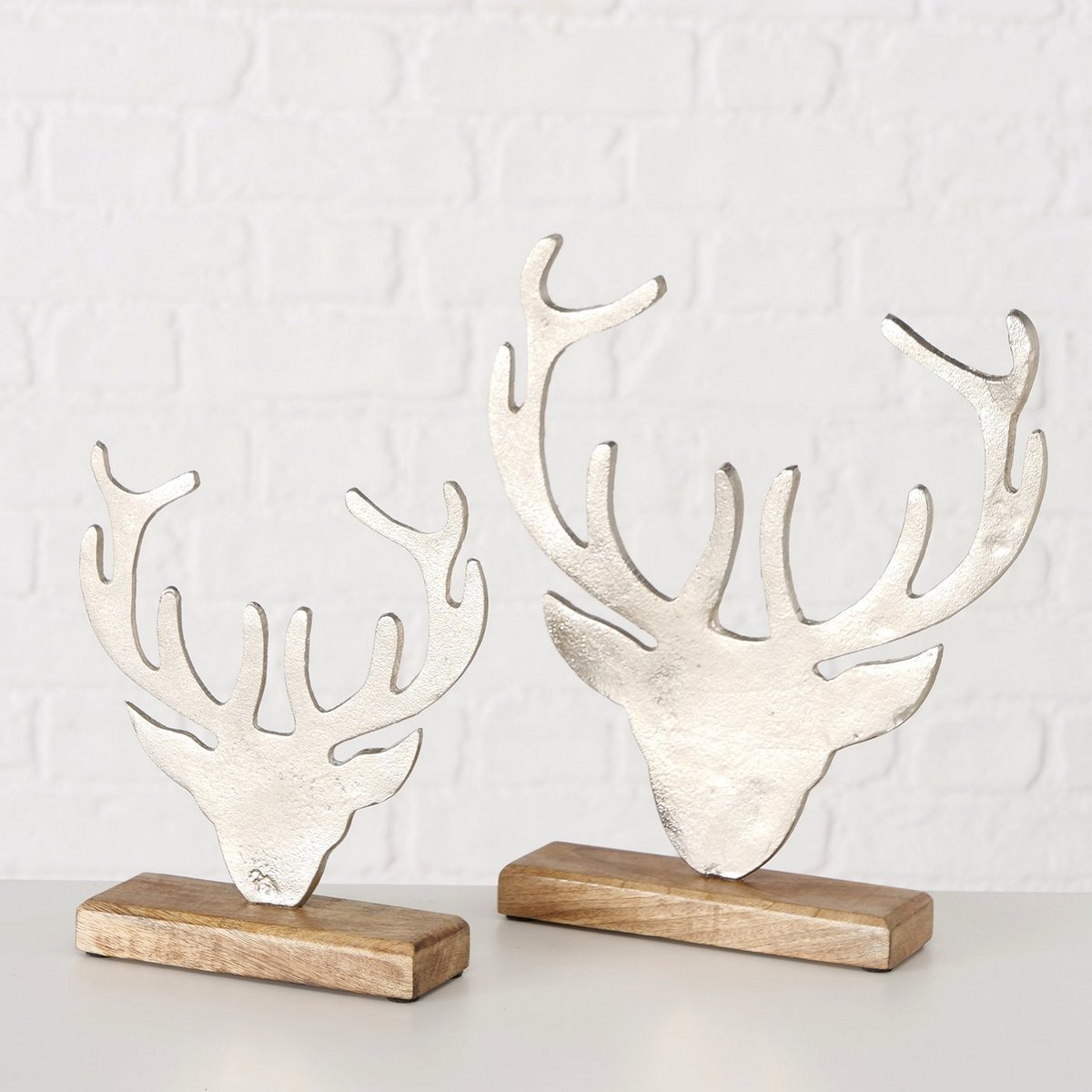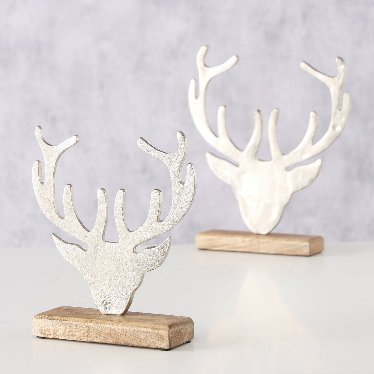 Decorative object Manto, 2 p., Set 2, Deer, H 23,00-31,00 cm, Mango (Mangifera indica), Alu nickle, Multi-coloured mixed