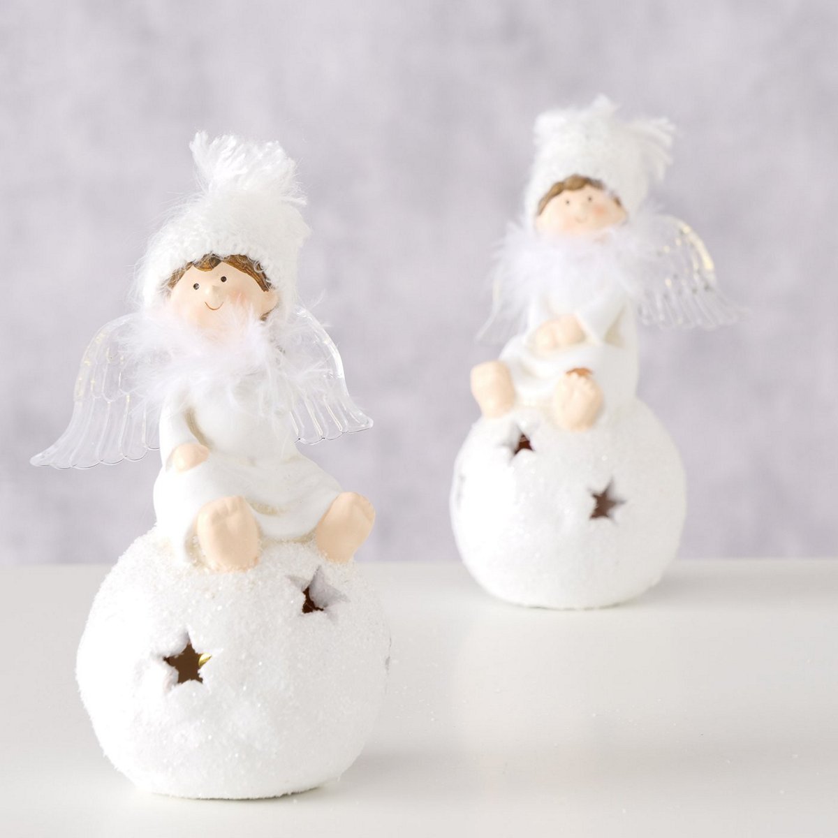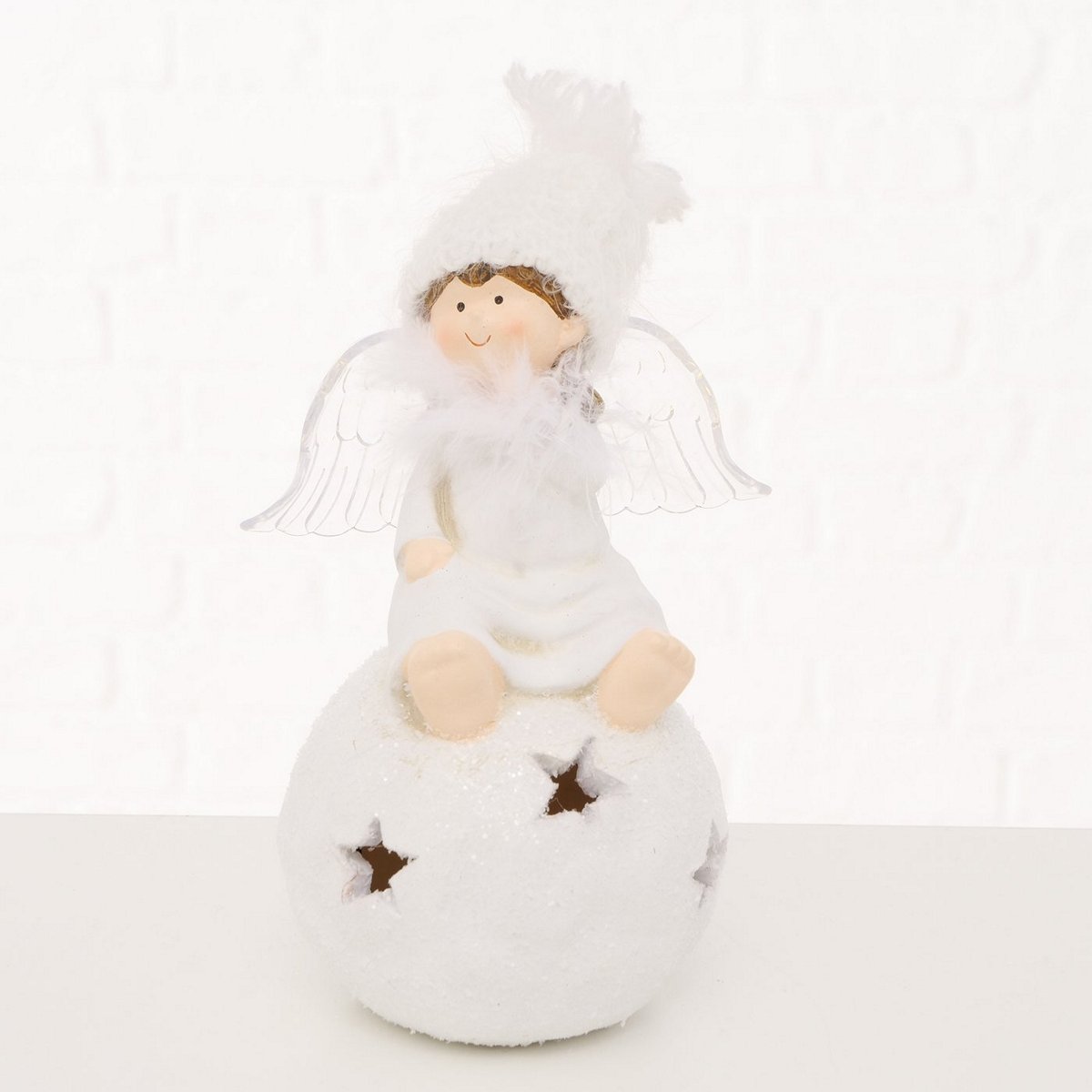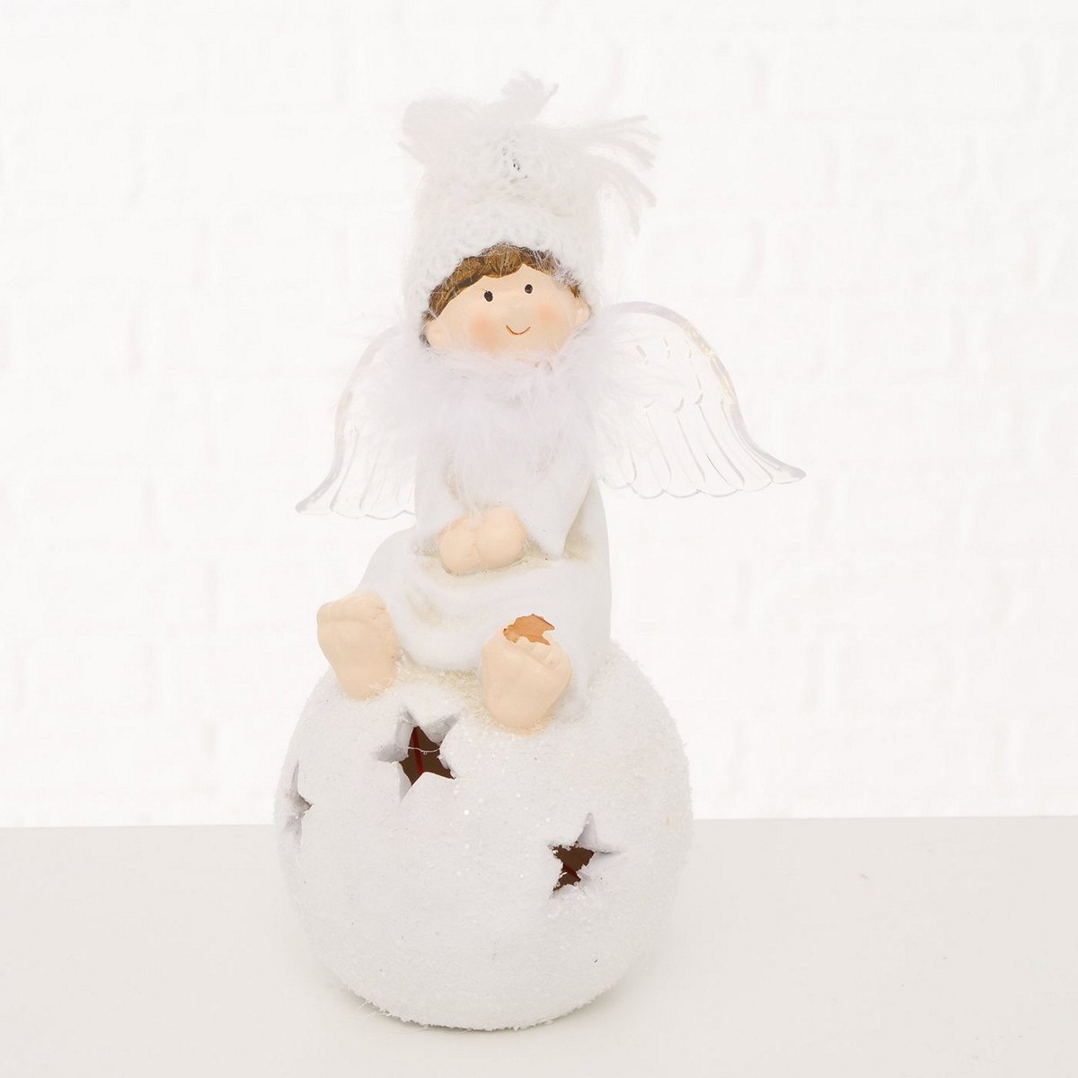 Decorative object Melyna, 2 ass., Angel, LED, 11x9x18,50cm Terra cotta terracotta white