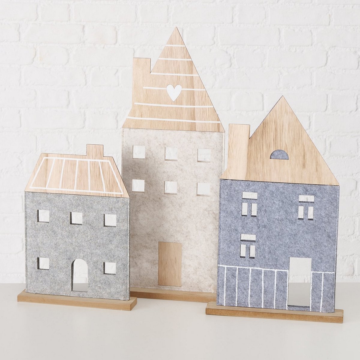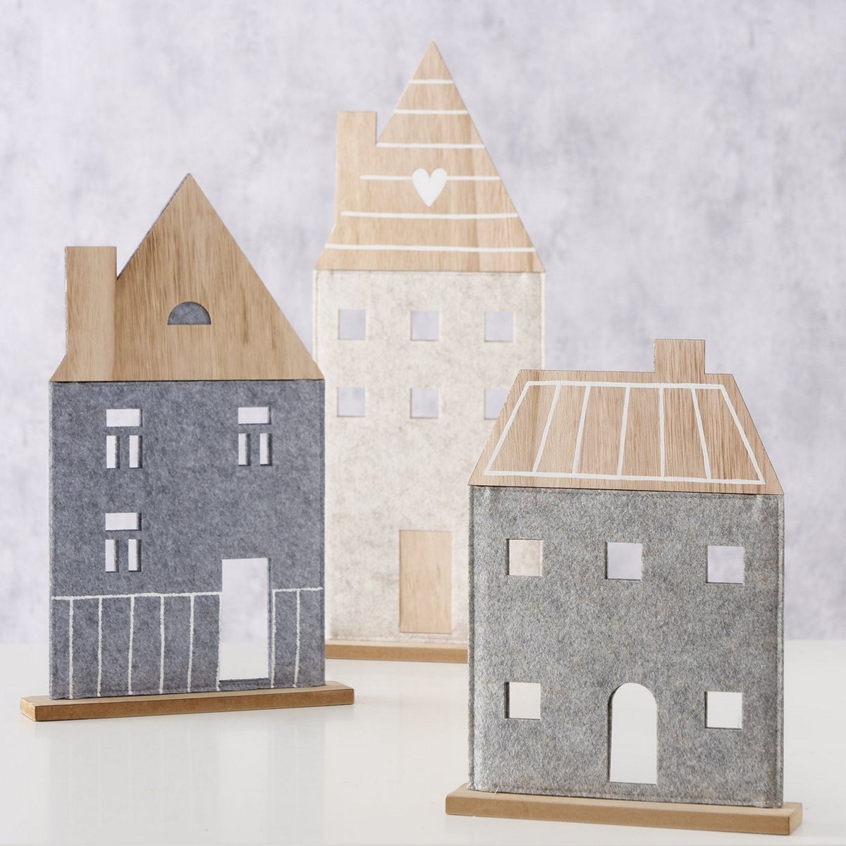 Decorative object Nordy Set/3 House, 23x6x54 cm,26x5x42 cm, 23x5x32 cm MDF, Polyester-felt, Multi-coloured mixed materials