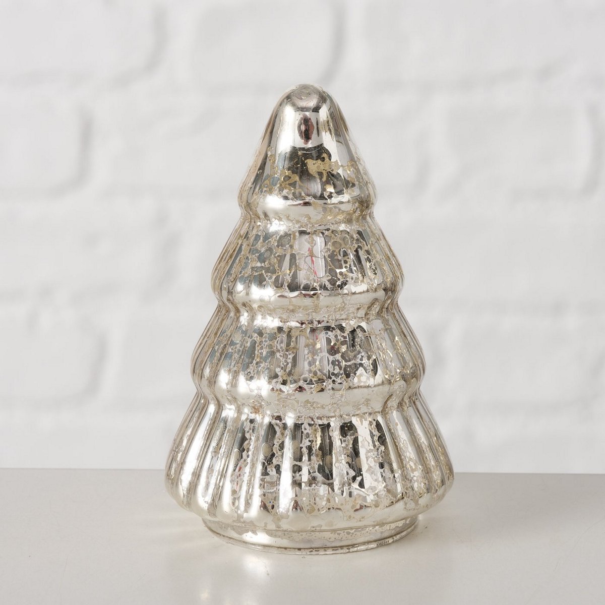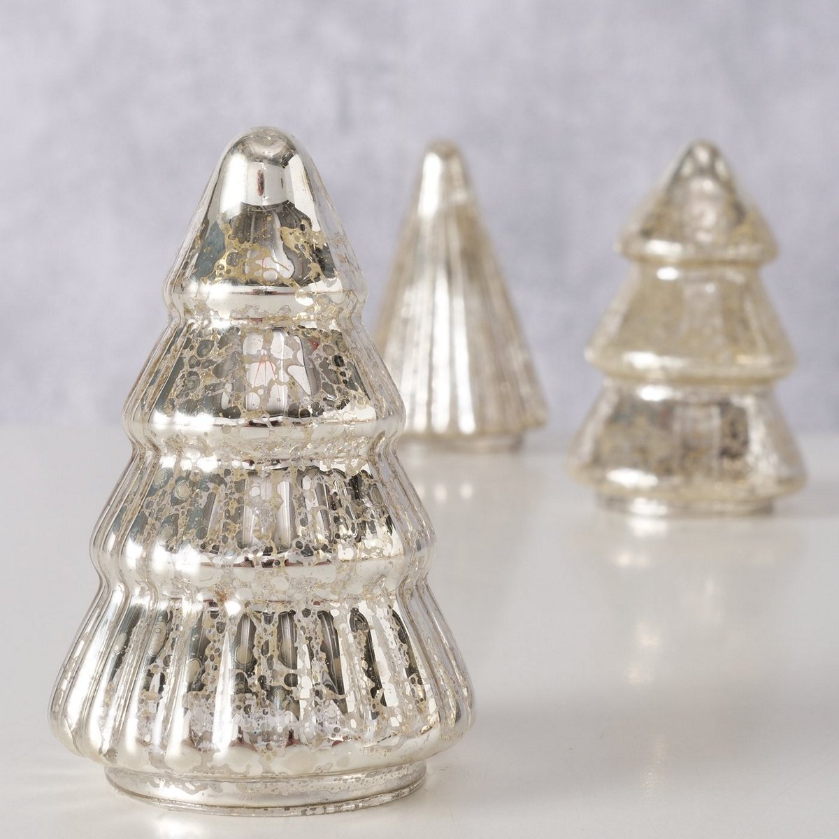 Decorative object Tovla, 3 ass., Fir, Christmas tree, Counter display, H 9 cm, Glass lacquered glass laquered antique si