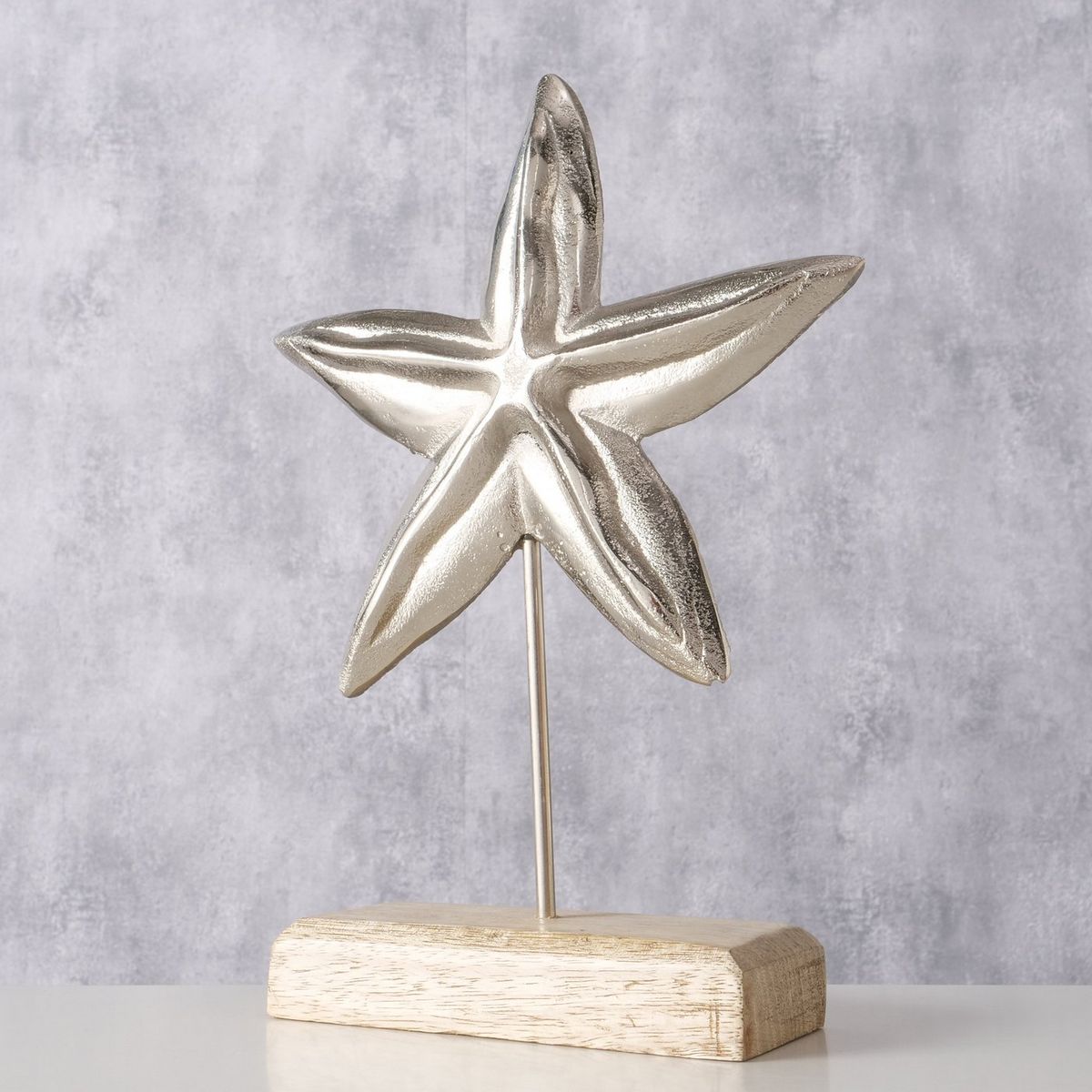 Decorative object Zeester , Starfish, with stand, H 26,00 cm, Mango (Mangifera indica L.), Aluminium