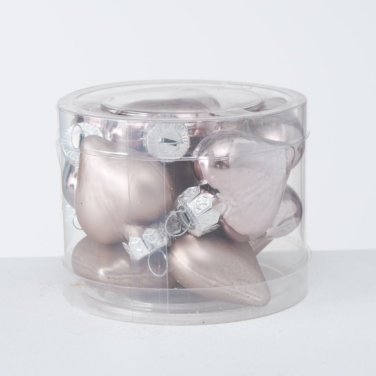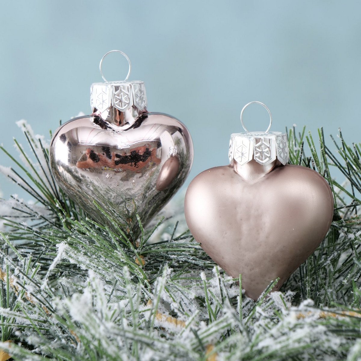 Decorative pendant , 12 p., Heart, With hanger, H 4,00 cm, D 4,00 cm glass laquered light-grey
