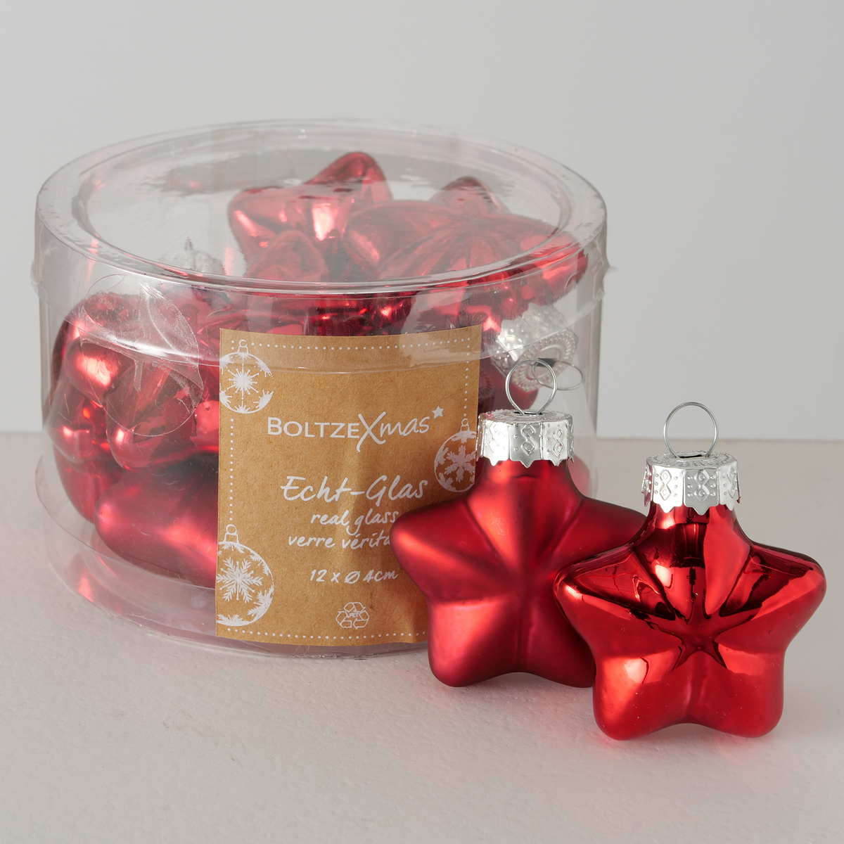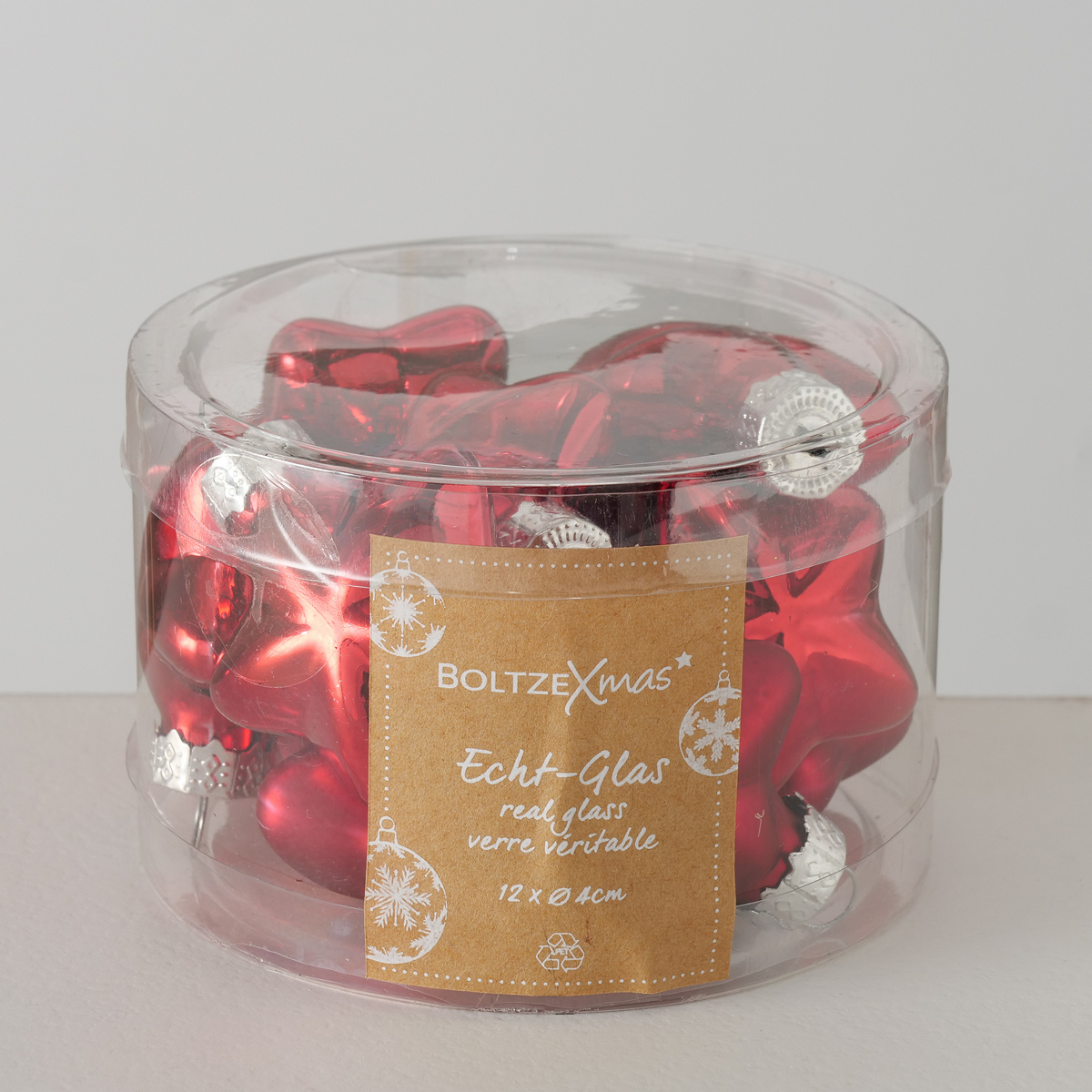 Decorative pendant , 12 p., Star, With hanger, D 4,00 cm, Glass laquered glass laquered darkred