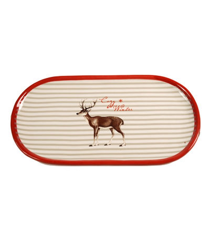 DOLOMITE OVAL PLATE WITH DEER DECAL RED 27.3X14.8X2 CM