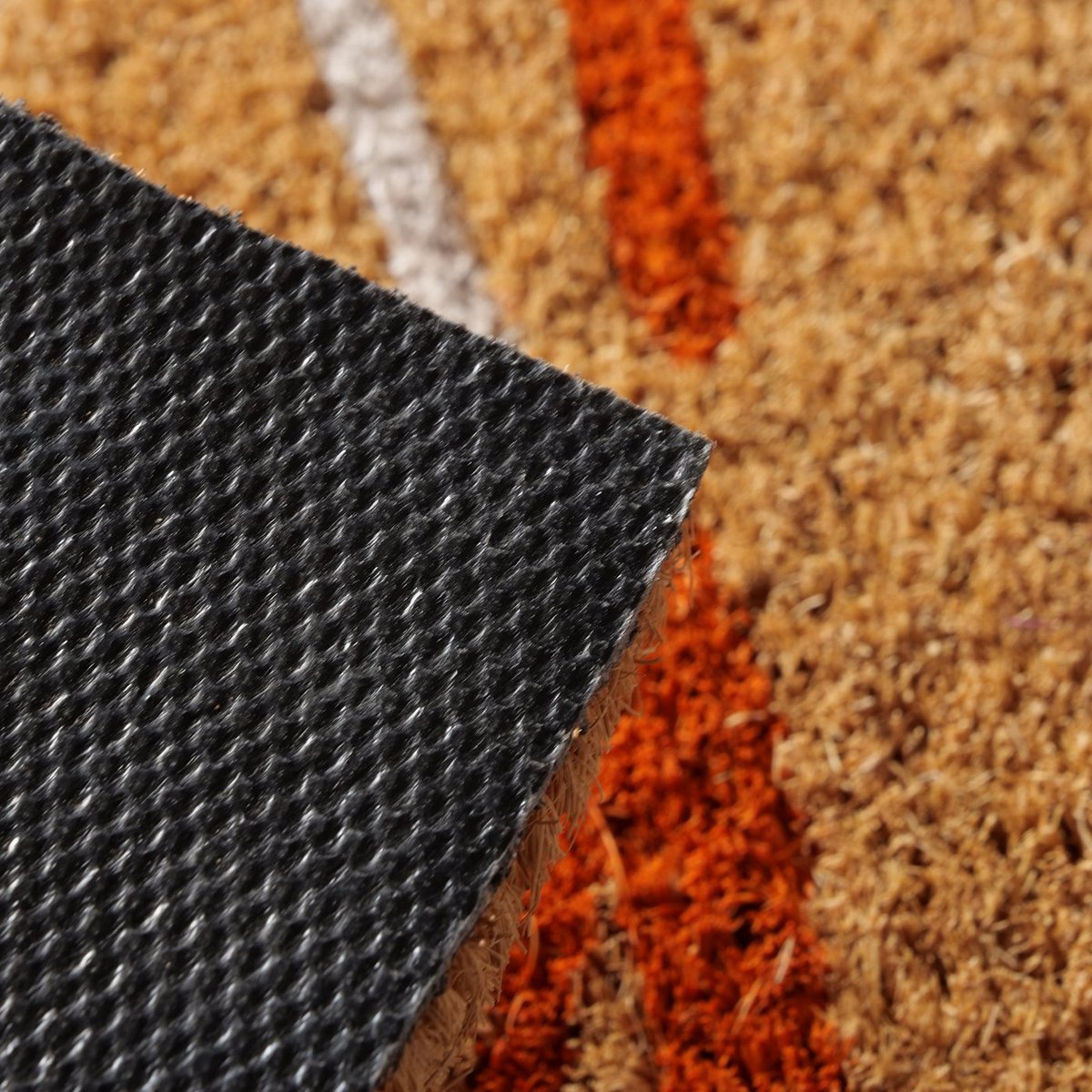 Doormat Happy, L 60 cm, PVC, Coconut, Natural, Orange, Purple, Multi-coloured, Saying/Text mixed materials colour-mix