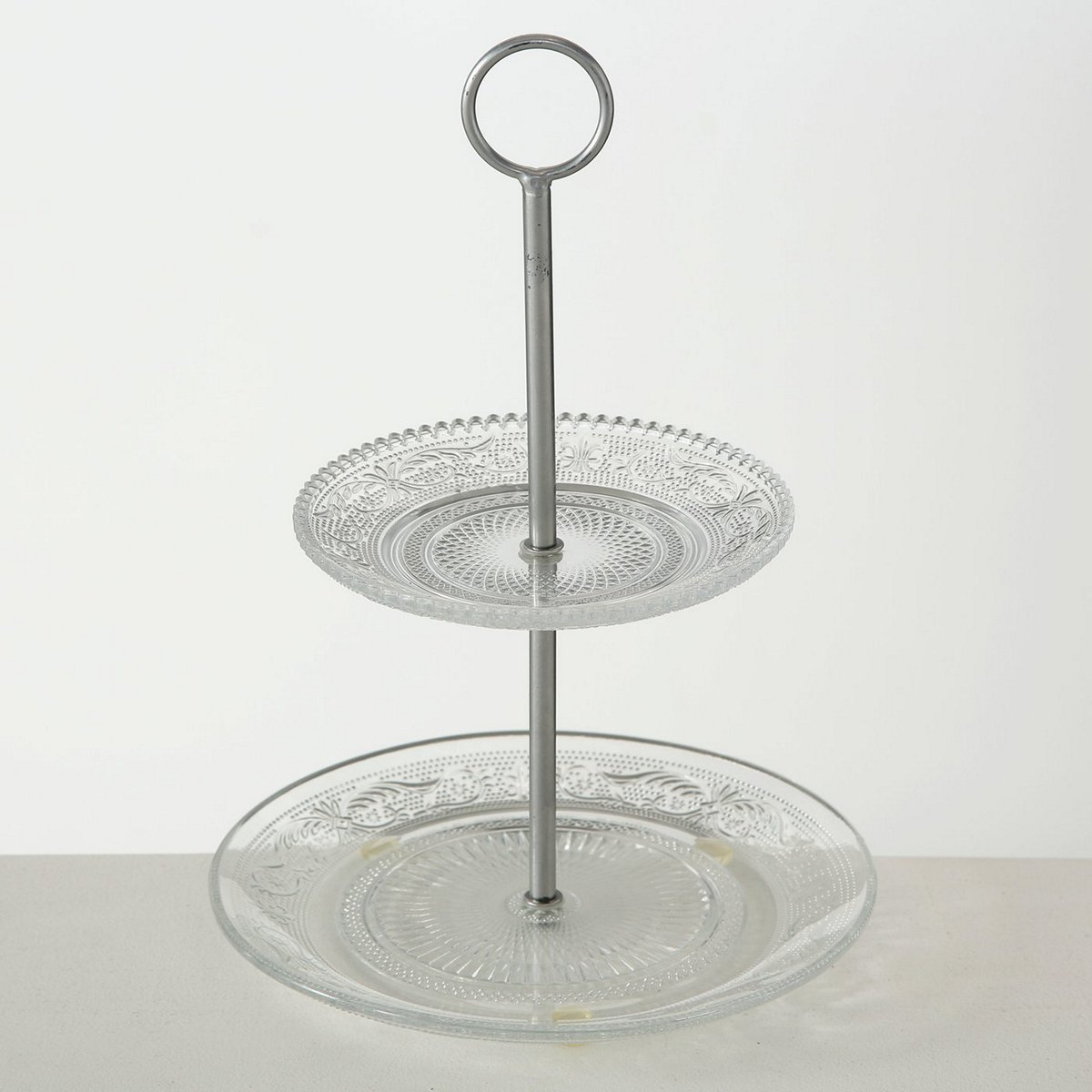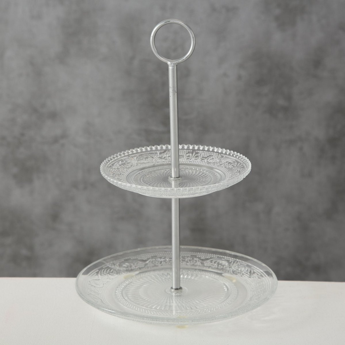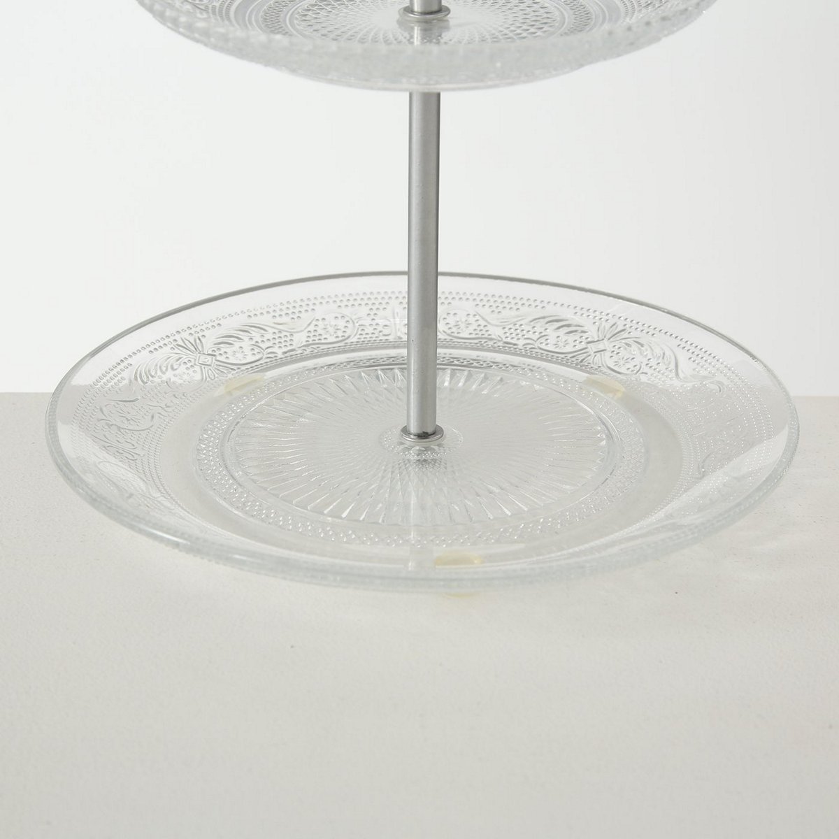ETAGERE RELIEF 2TIER D20 H28 GLASS CLEAR